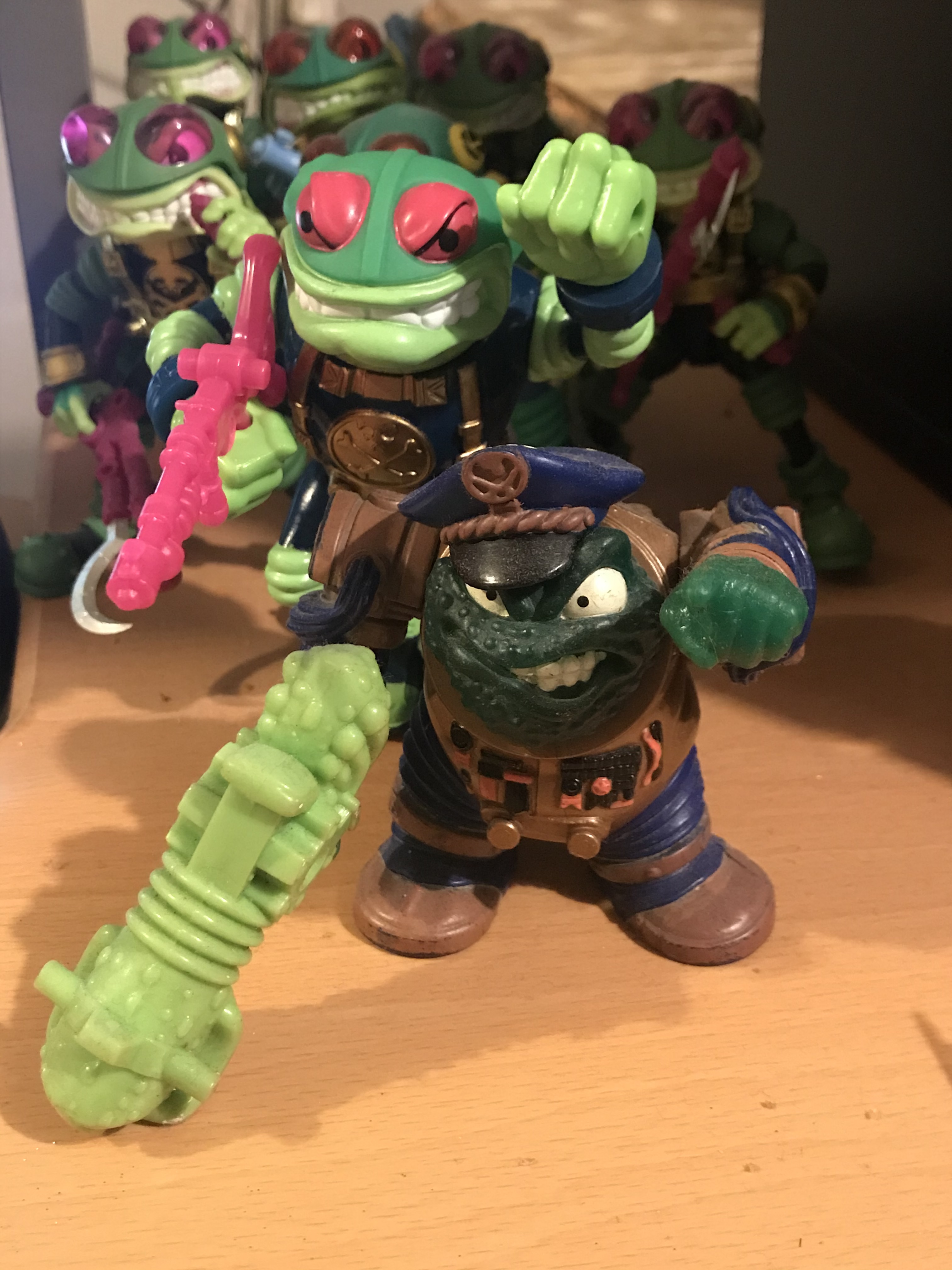 Very late with this one, but they are the only things on my desk right now. I got some retro goodness from a friend for Christmas. The original Storm Toad Trooper. The stance of the feet and legs are both very strange and yet frog-like. Also really cool. It spurred me on to place my original Toad Air Marshall front and centre of his army.
