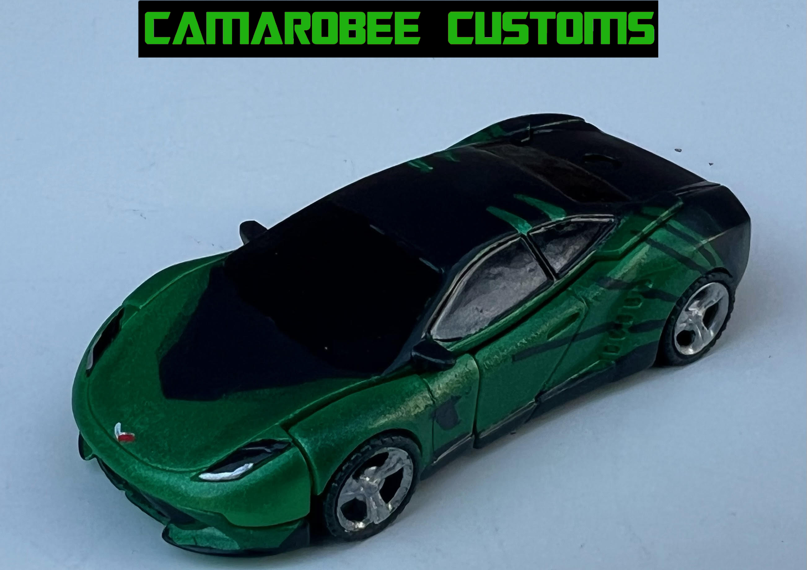 DOTM Cyberverse Bumblebee is probably my favorite Legends class figure of all time. The accuracy was a huge step up from prior legends Bees, and he has his plasma cannon molded in! Over time, however, my Bee that I got on the first day that DOTM figures were available was showing signs of wear after more than 10 years, particularly with the Autobot logo on the hood and the windshield. I decided to take the opportunity to fix it! I removed the remnants of the bot logo and the inaccurate black section of the bumper with IPA, and redetailed the figure in both modes! Particularly happy with how the back of alt mode looks with the taillights, exhaust pipes, and chevy logo.