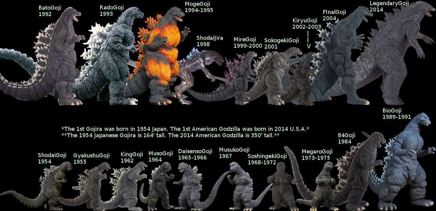 Here's every movie Godzilla to 2014, all of these images are in color.