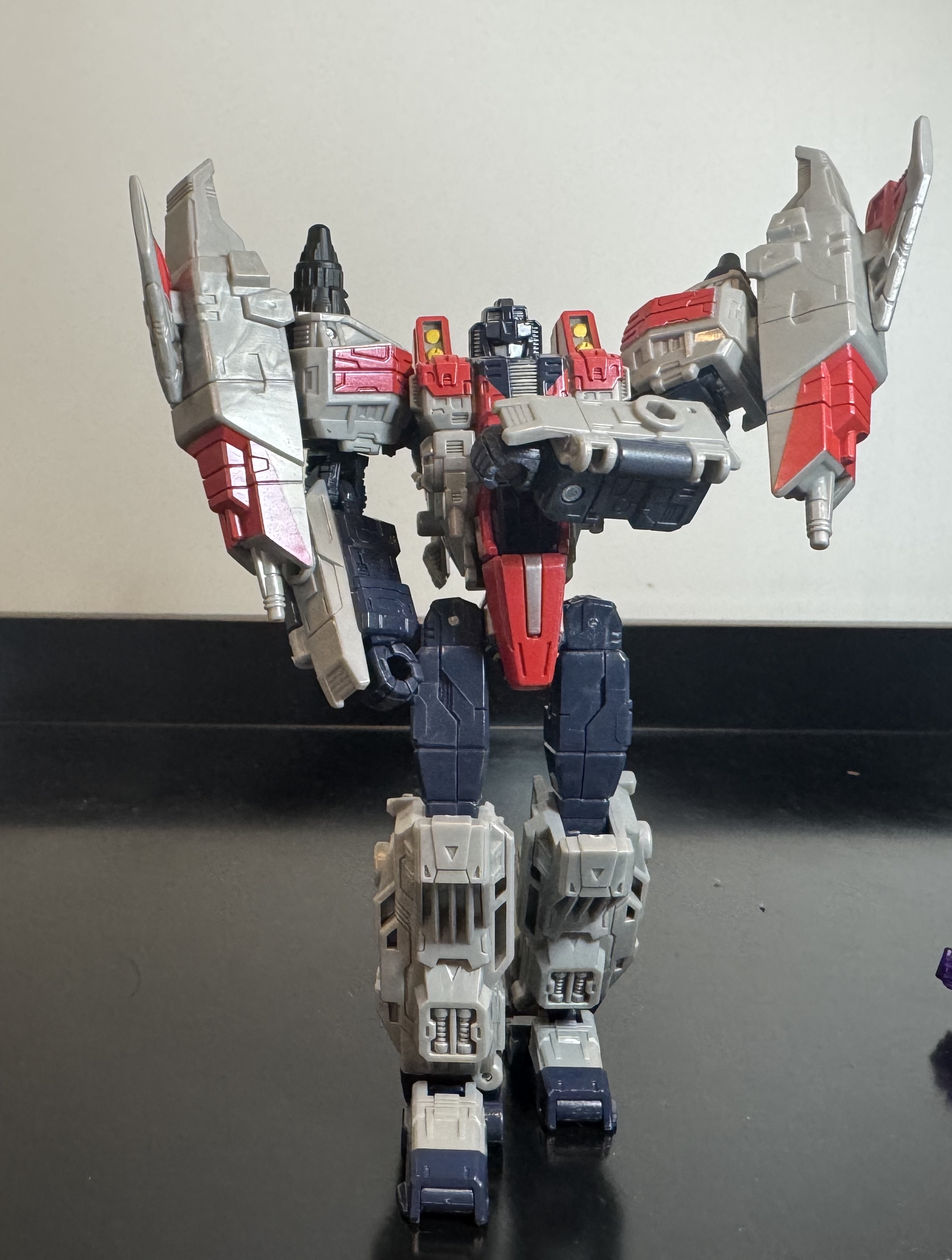 Finally managed to get this guy. All in all, he's pretty cool. Transformation is a bit fiddly all things considered. But robot mode is fantastic and jet mode is pretty good, except for the large gap where the gun stores.