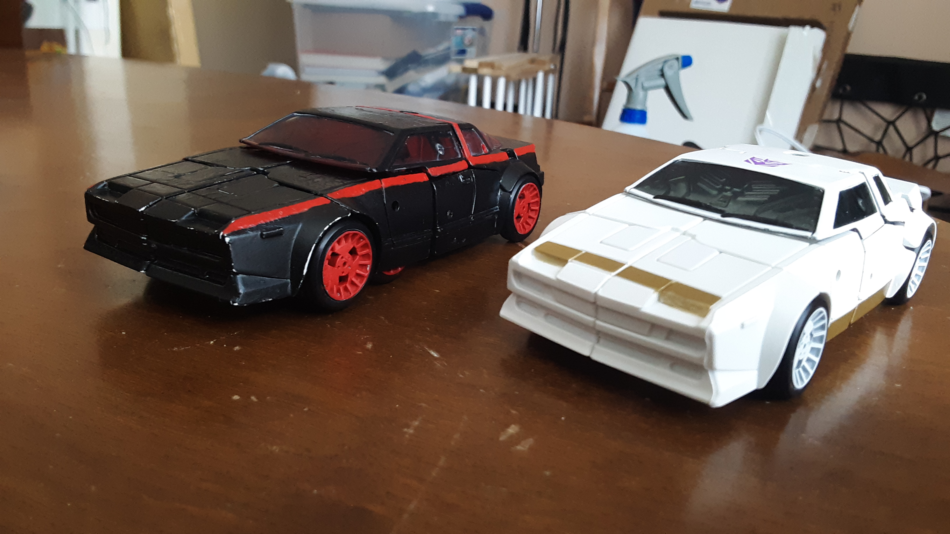Nice work, especially on Getaway; you've gotten him pretty close to the look for a redeco'd Shadowplay Chromedome. About the only thing more you could do is painting the rear windshield (or at least, the slats that sorta-approximate one) red.