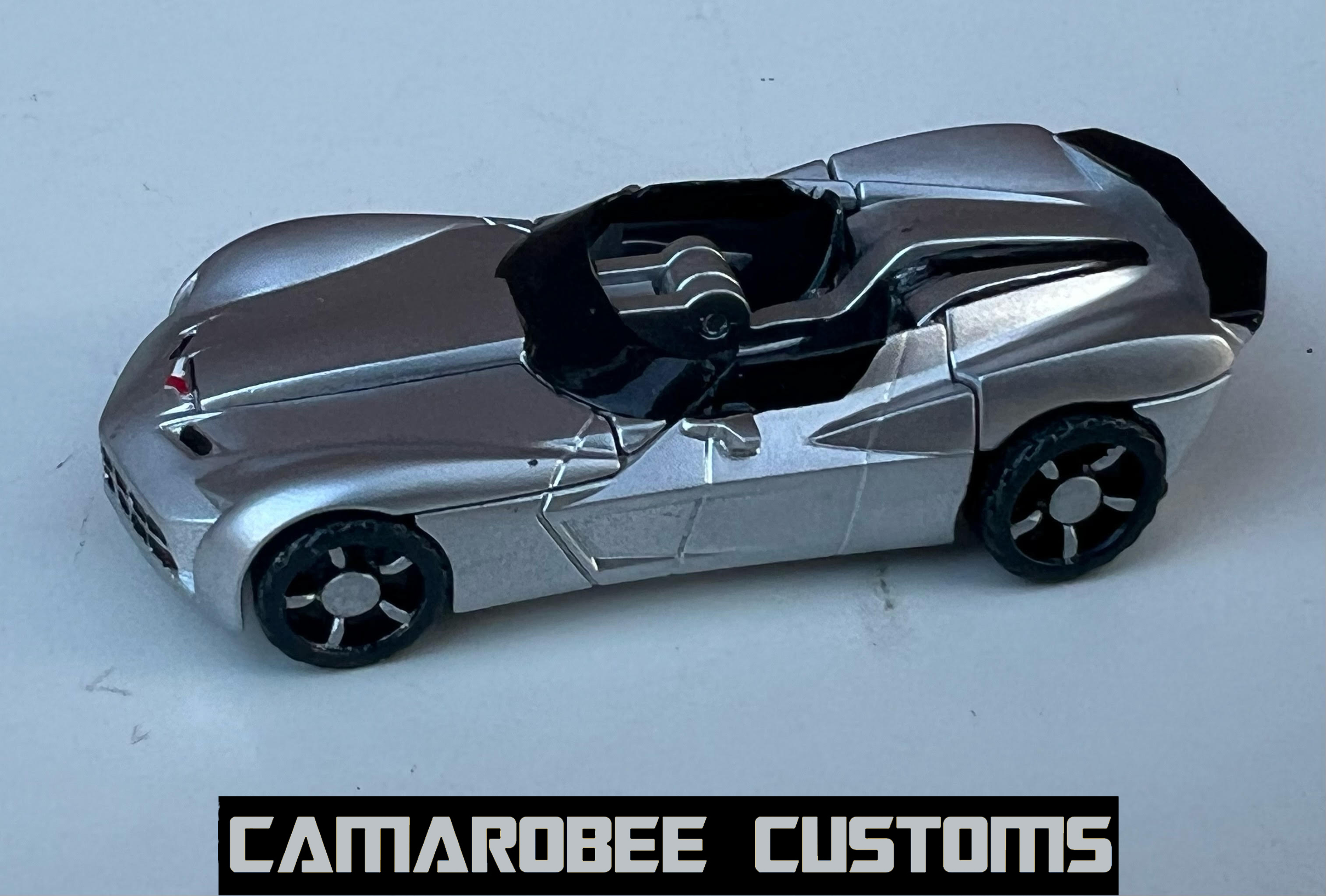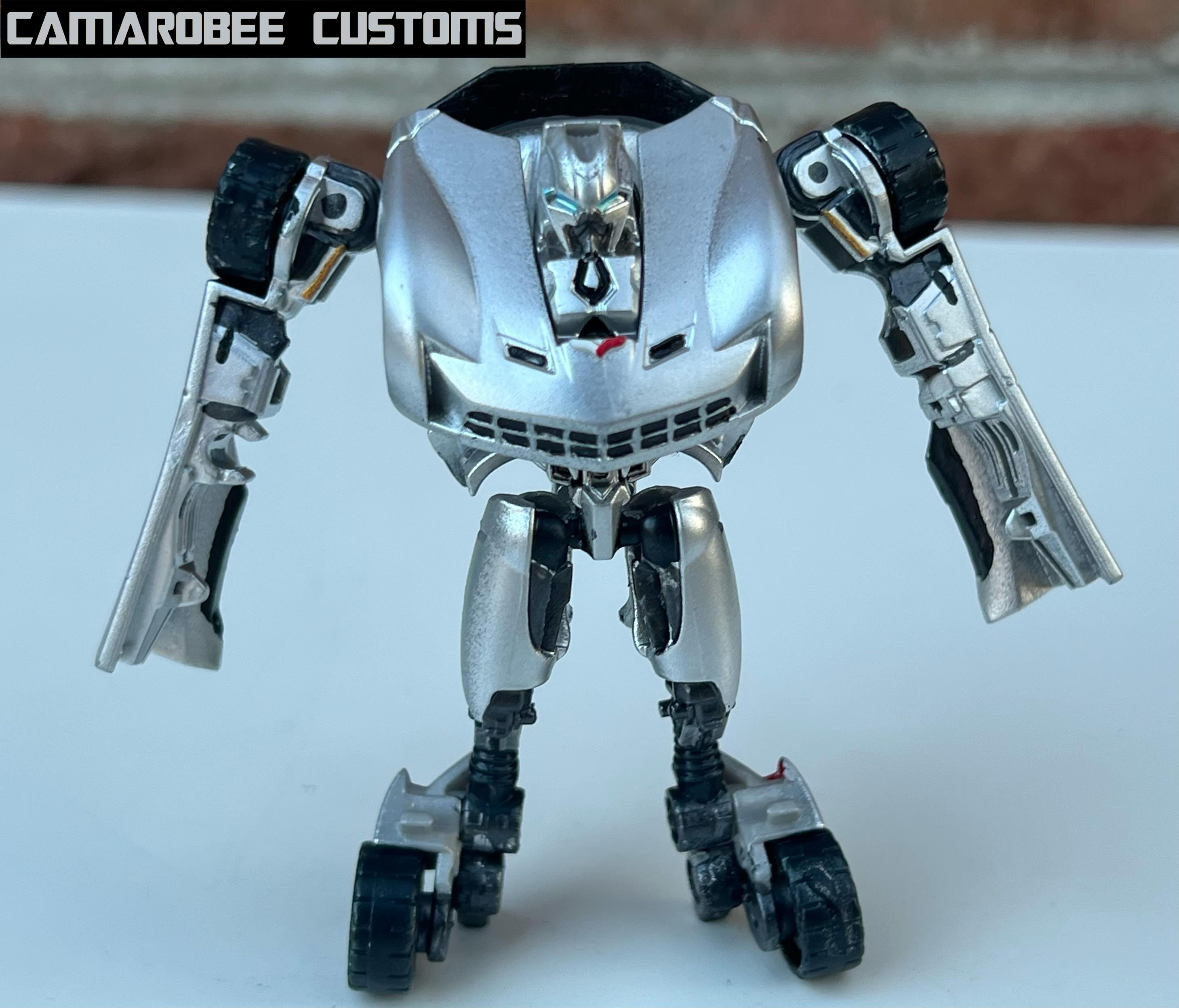 DOTM Cyberverse Bumblebee is probably my favorite Legends class figure of all time. The accuracy was a huge step up from prior legends Bees, and he has his plasma cannon molded in! Over time, however, my Bee that I got on the first day that DOTM figures were available was showing signs of wear after more than 10 years, particularly with the Autobot logo on the hood and the windshield. I decided to take the opportunity to fix it! I removed the remnants of the bot logo and the inaccurate black section of the bumper with IPA, and redetailed the figure in both modes! Particularly happy with how the back of alt mode looks with the taillights, exhaust pipes, and chevy logo.