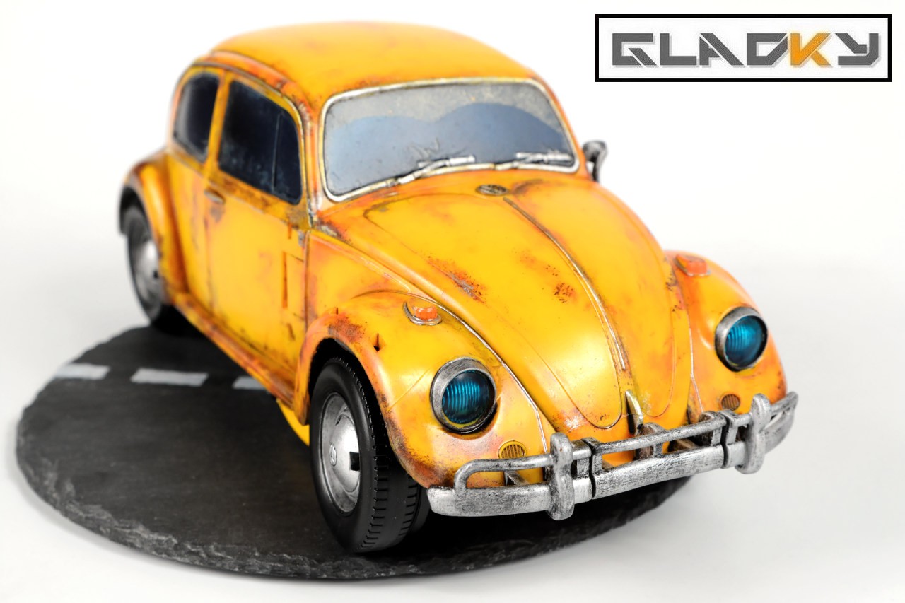 My custom was inspired by those old cars, that spend decades in somebody's barn and one day are discovered in a pretty rough shape. After seeing first trailers of Bumblebee, I really wanted to do something like that with this guy. Old VW Bug was a perfect candidate to be aged and damaged a bit, especially in the context of movie. Cinematic version of Bumblebee Was mostly dusty but not too damaged, however I have decided to go all the way with this project and this is what I came up with.
