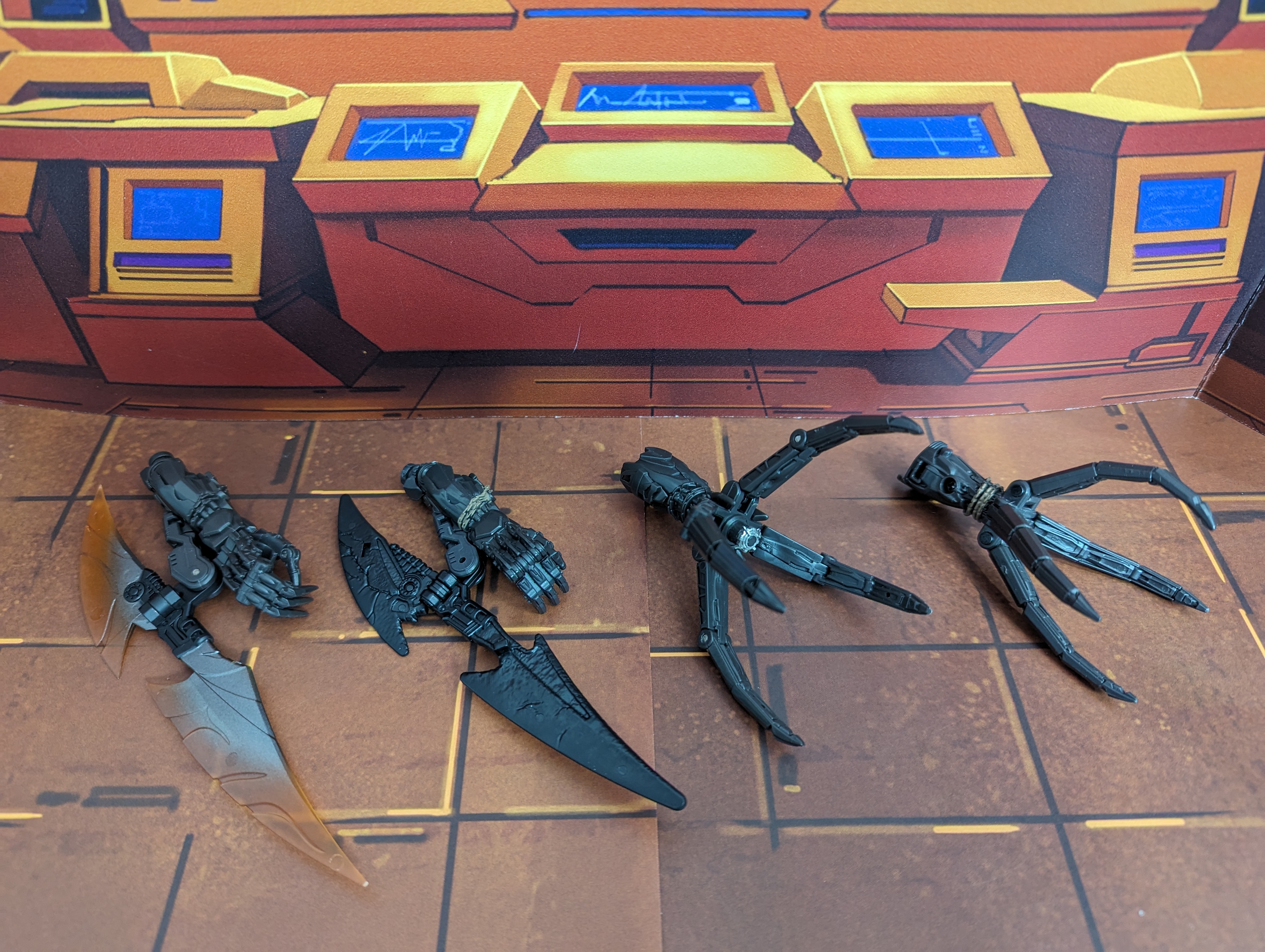 So the highlight here is the upgrade set for SS ROTB Nightbird. I already had bought the swords for her and have now added the wings, forearm claws, and leg/feet pieces.