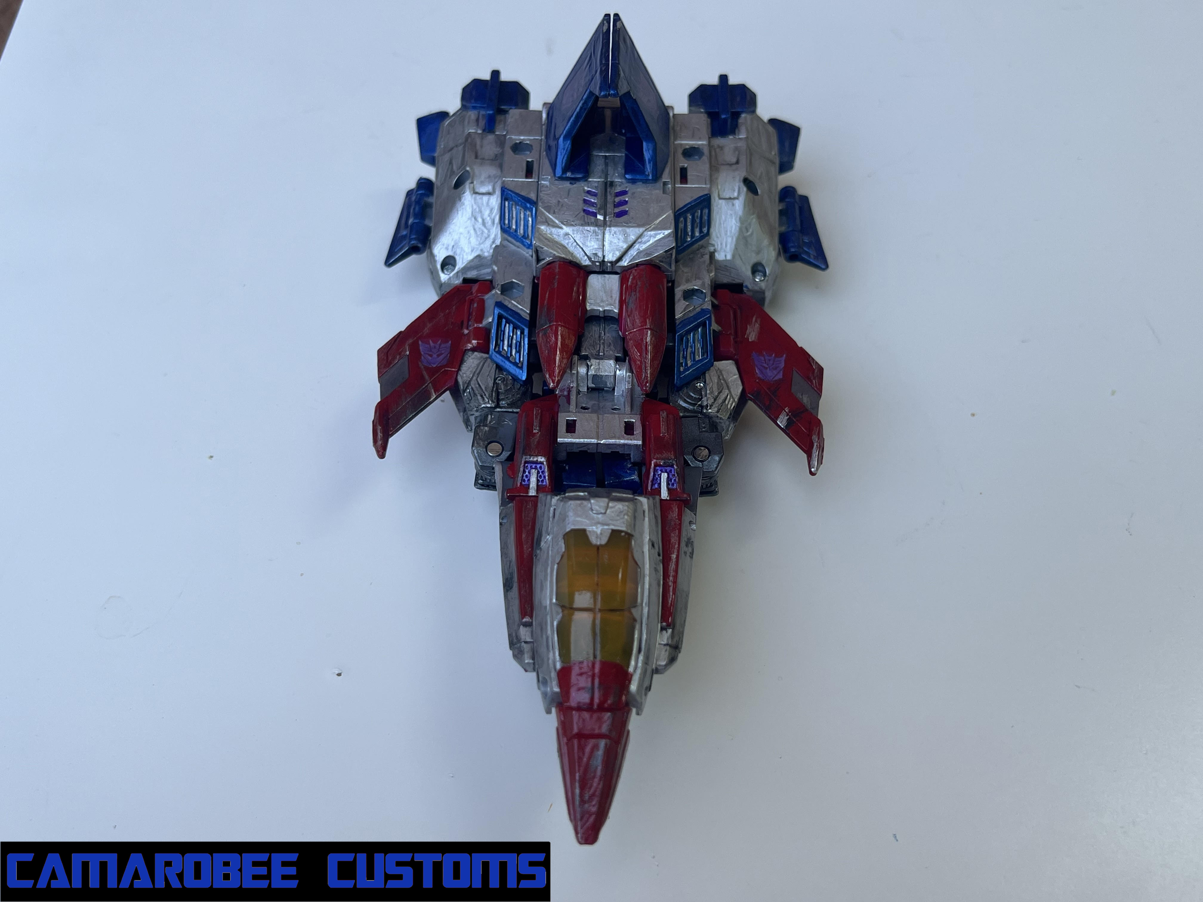 I started off Starscream with new base colors - silver replacing the gray, and a new metallic ble and red for the primary colors. I did some detail work with metallic purple to recreate the dark energon glow effect, and then went into weatherign with some wash and primarily dry brushing with silver and gunmetal.