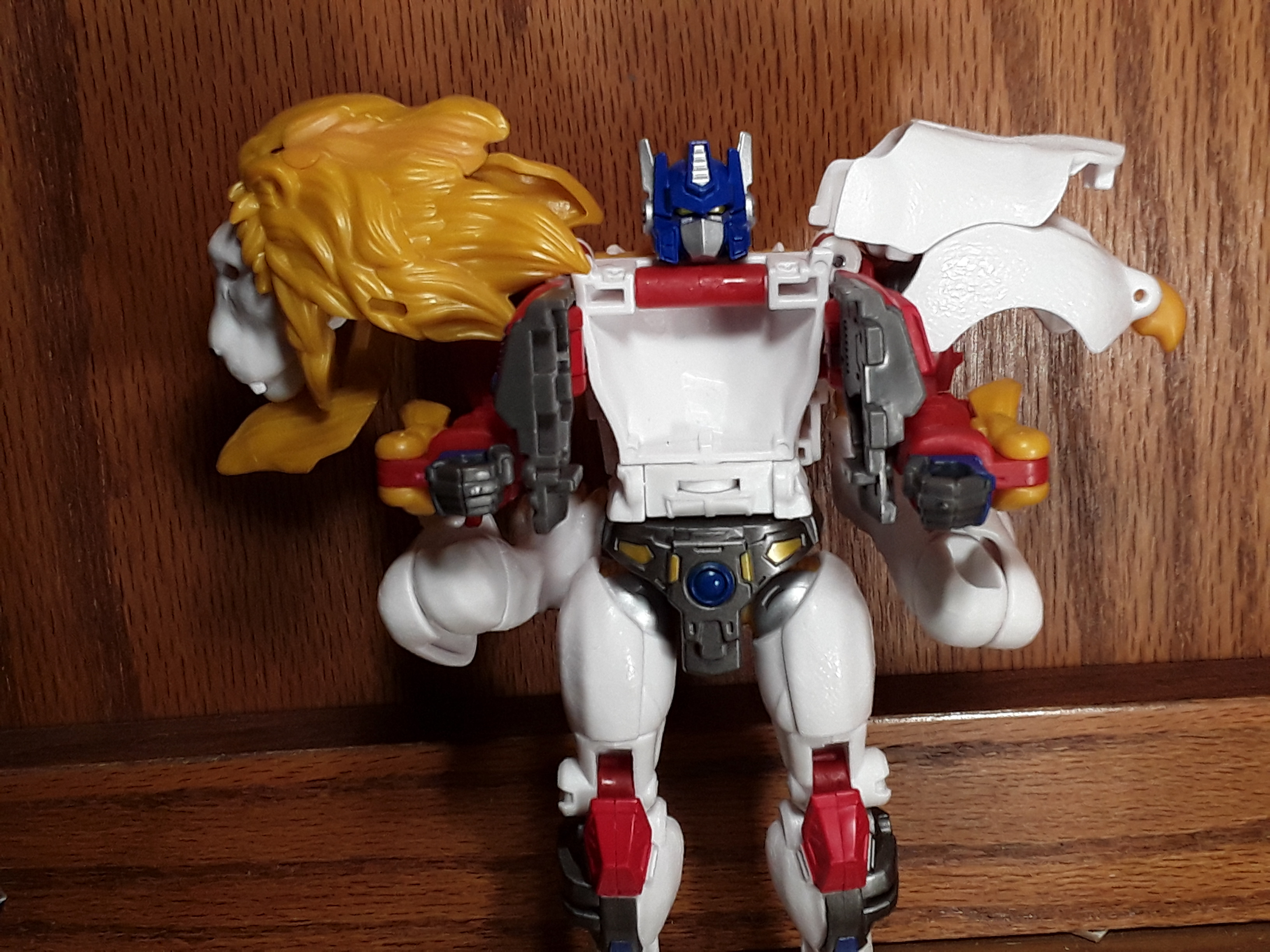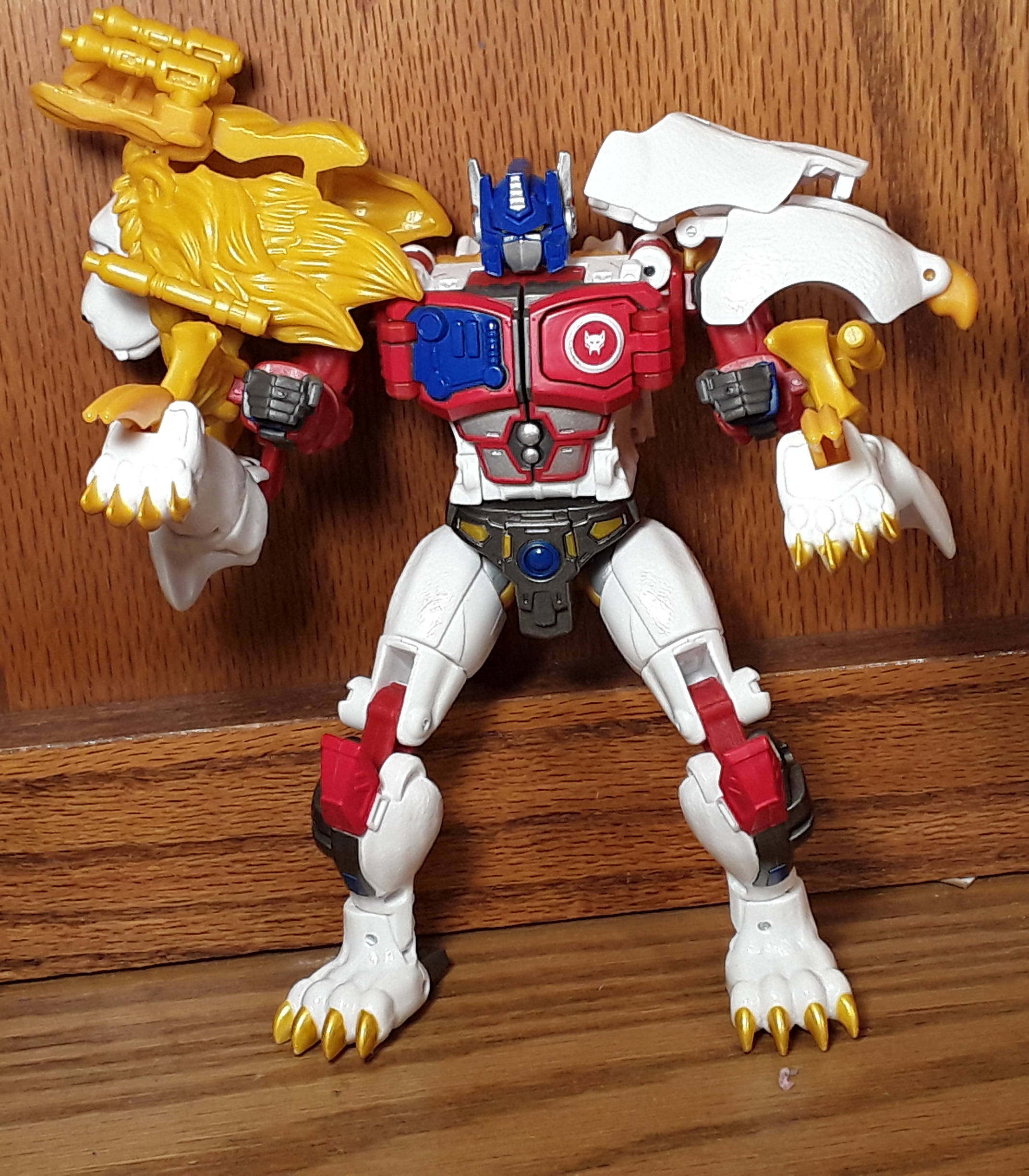 The Lion mode is great as well. The gold next to the yellow parts of the mane blends in suprisingly well and doesn't bother me. The ways the legs transform results in a very pleasing mighty sillouette, absolutely destroying the origional figure, as almost everything does. And the opening mouth is the cherry on top. My only real complaint is the lack of painted eyes. It looks awful, and I'm going to have to fix it myself eventually. No time soon, probably.