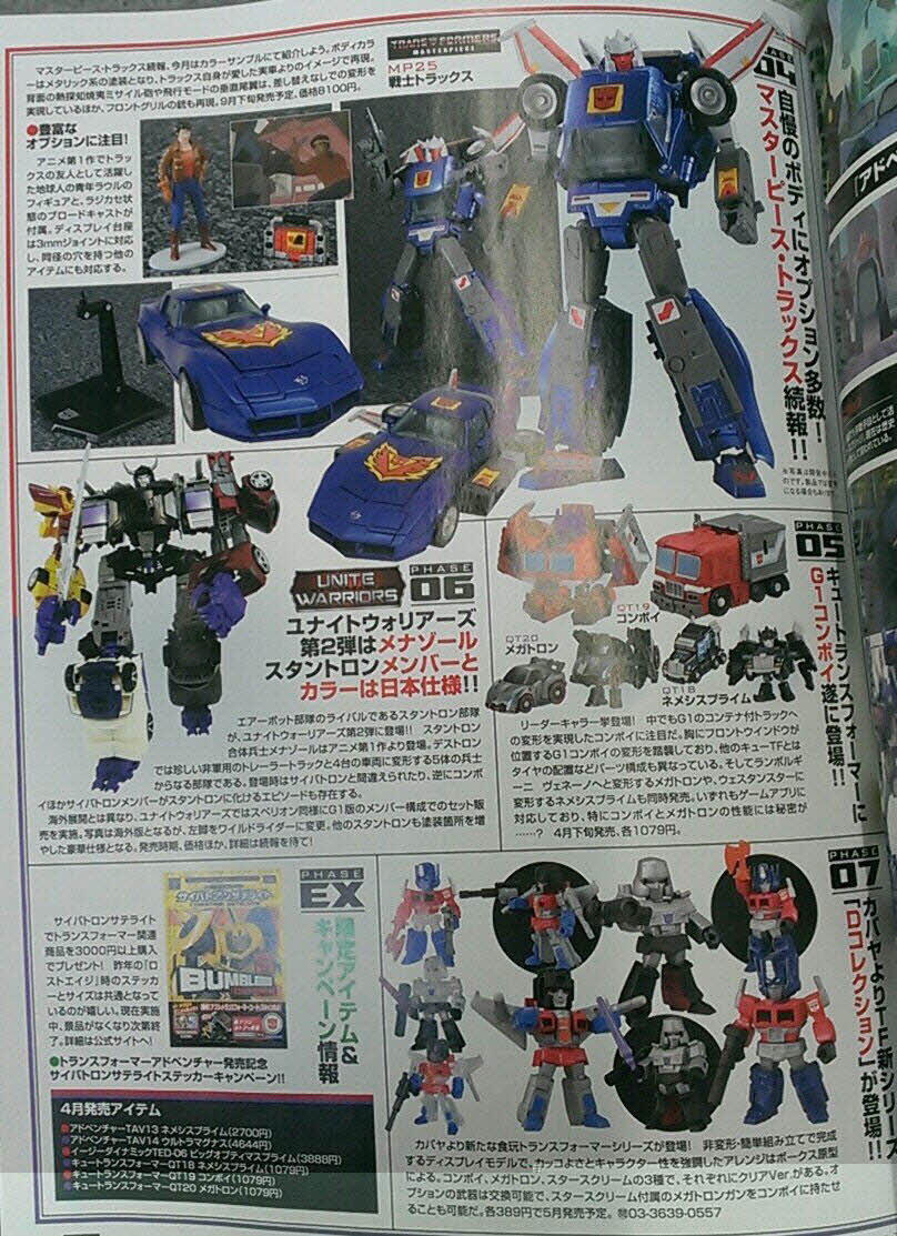 Planet Iacon's facebook page posted pictures of scans from the Hobby Magazine Figure King. They feature Transformers products that will be released in Japan.