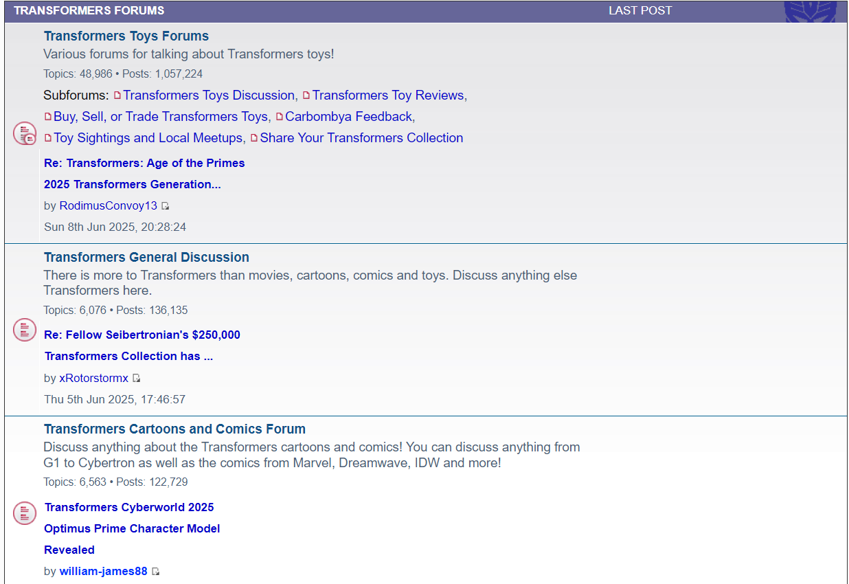 Seibertron wrote:Thanks for the heads up. Its on my list to fix if its something simple to fix. The "golden age" of seibertron code has broke in some places where I'm not accounting for the old styles in seibertron.com code. I'll have to see if the silver age code can be easily adapted for our forums.