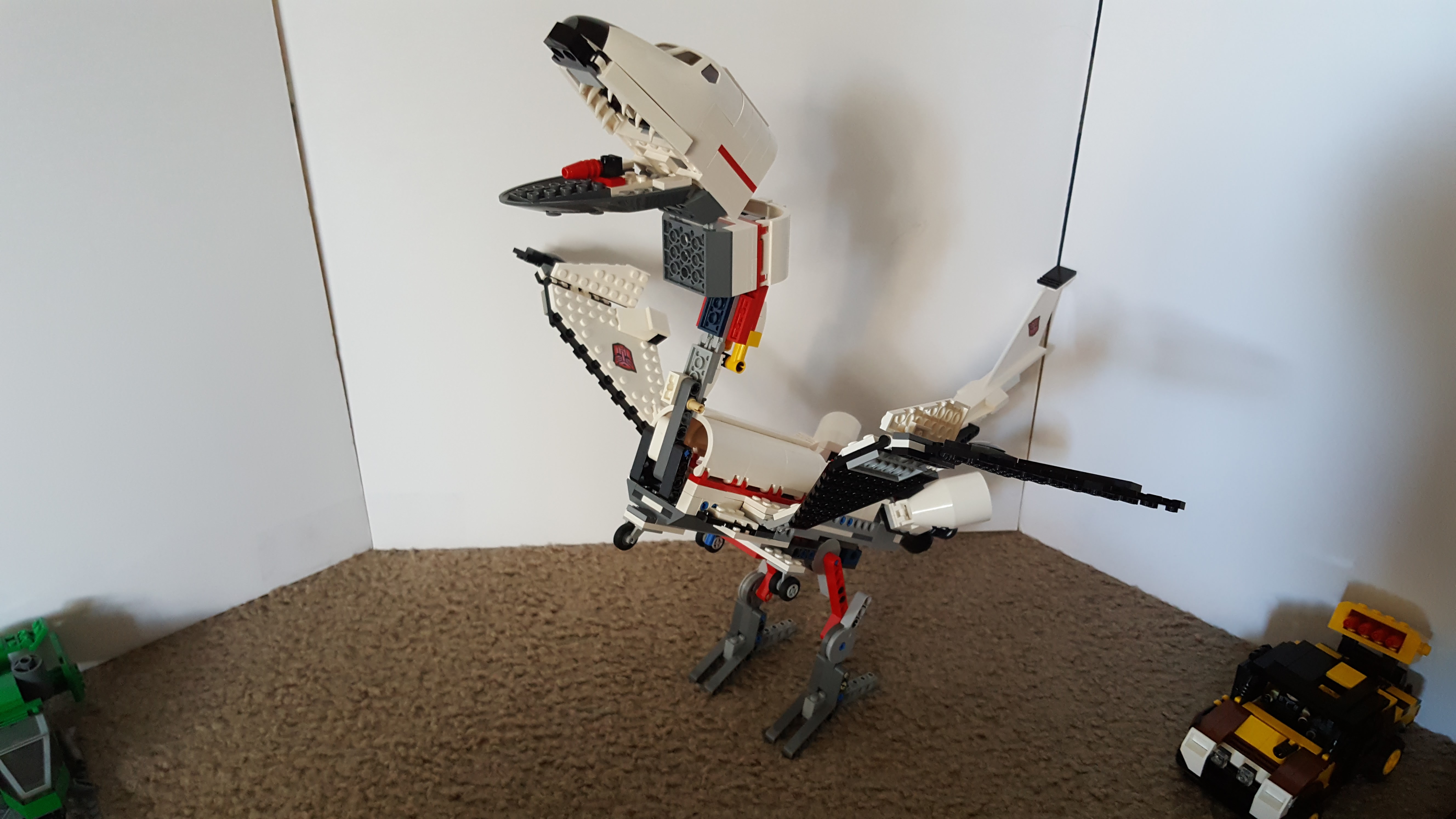 This all started with the shuttle. I took a Lego City Space Shuttle and extended it and built Sky Lynx out of it. He comes complete with a pilot (cant see him in the pics), working mouth (with teeth, that was hard!), working cargo bay with a boom arm and satellite, and is fully transformable without parts forming. Once he was done the idea of the Defiant set came into my mind and it was a must do!