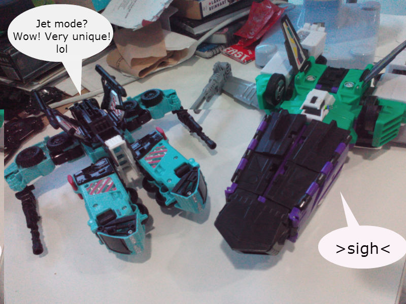 Wave 3 finally hit my area, and while playing around with Hot Spot, I found he could turn into a fairly decent scorpion mode. Can Sixshot do that? I THINK NOT! One more for da blue guy.