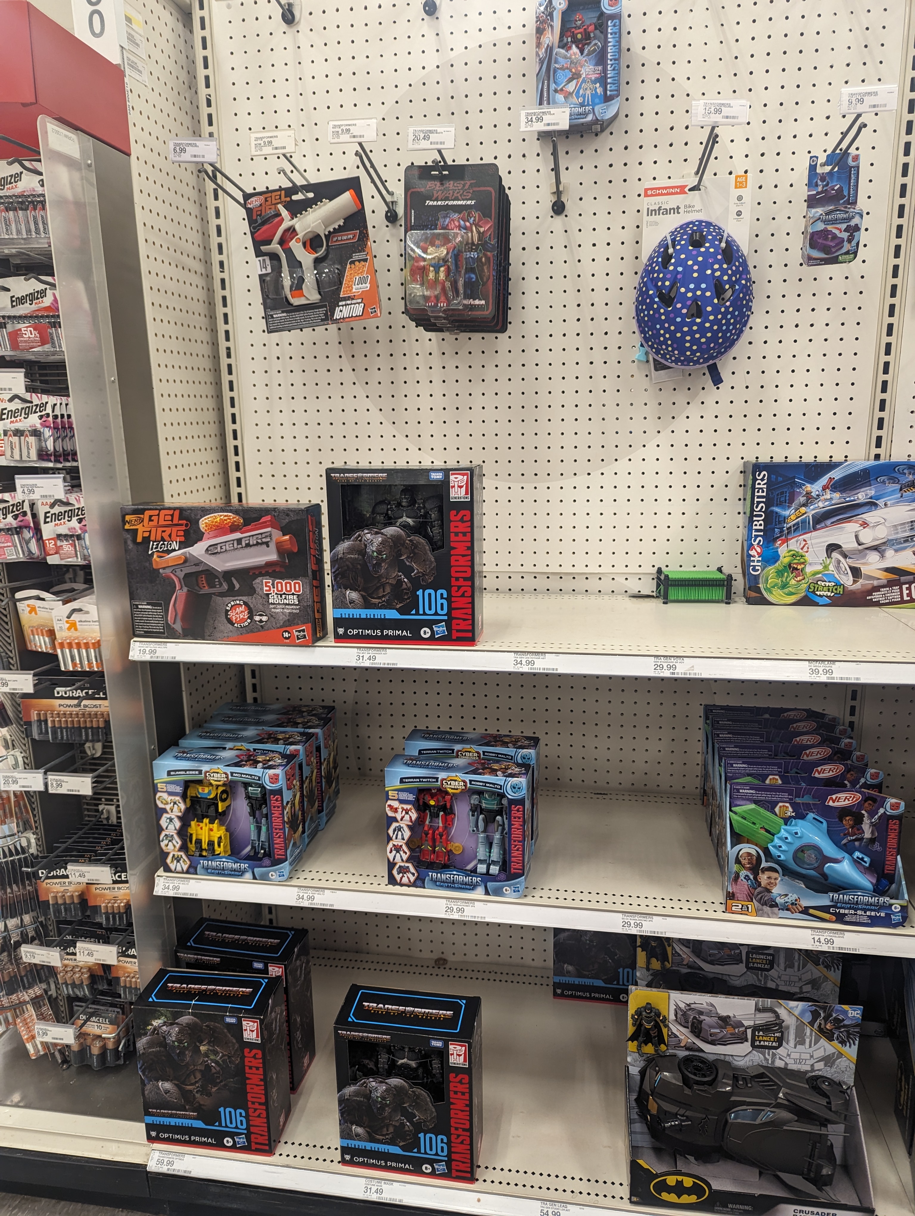 Not really toy related but looks like Walmart will have Optimus Primal and Optimus Prime costumes for kids and a blaster. These were spotted at the Walmart in Nixa.