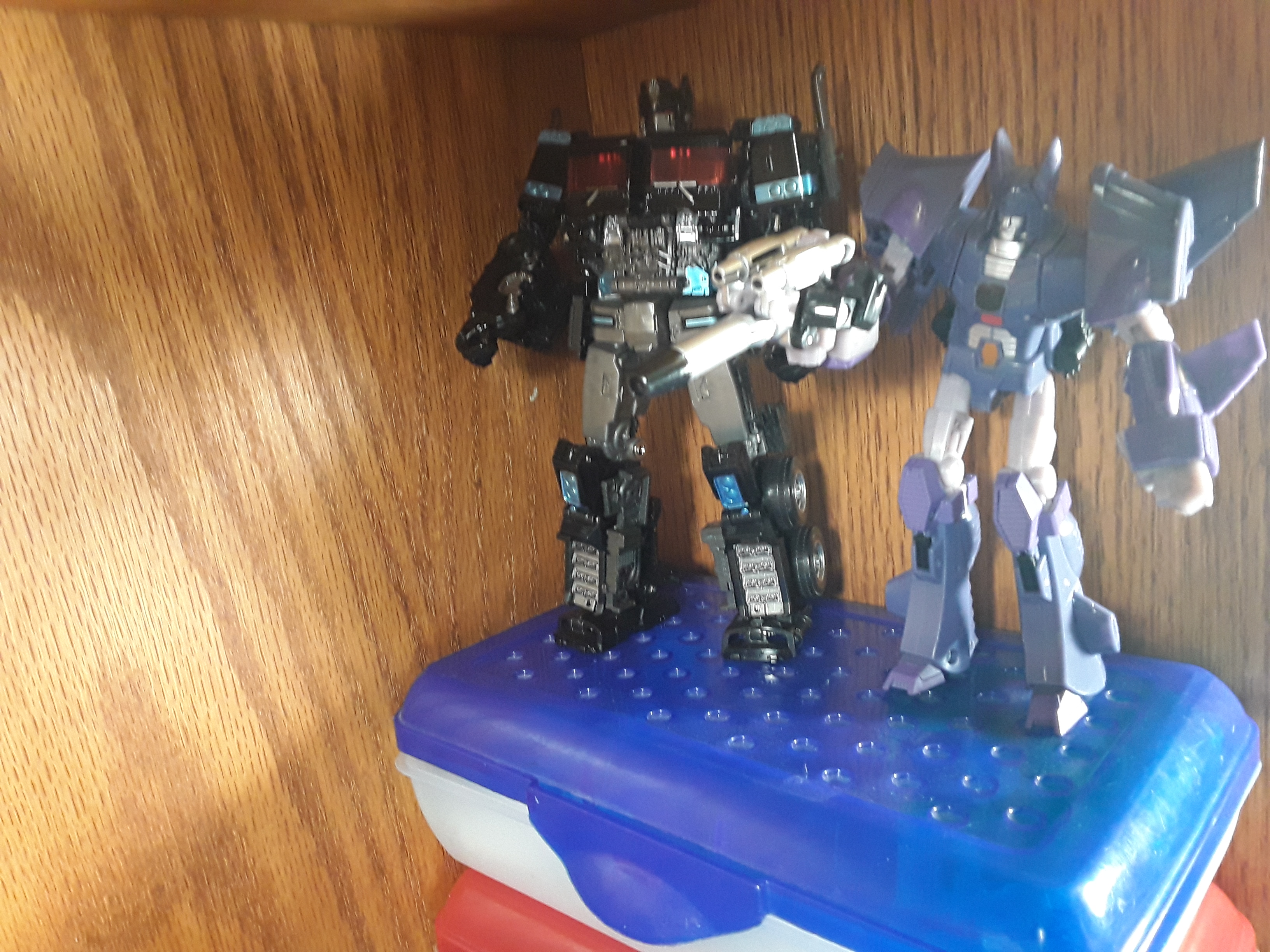 I'm going to get new shelves soon, but this will do for now. I may make some cooler backdrops and props later (with your advice), but that'll be when I know exactly how I want it and maybe after I split 86 and Beast Wars onto their respective shelves.