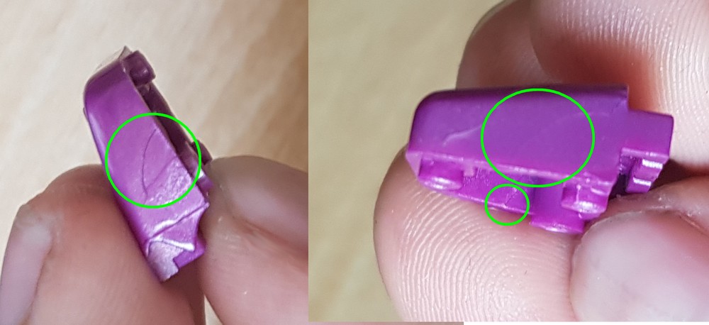 After reading through new reports I cheked my MP BW Megatron again. Unfortunatelly today I learned that my piece broke as well... from standing still... . I Transformed this figure 3 times, super carefully and did not notice any stress markes and cracks at the time. Today when I checked my piece after it was standing on the shelf for a few days, I found out that the central crotch piece is cracked in two places... I disassembled the figure to check the damage and it looks like half of the ctotch piece cracked exactly where the swirls are. I am seriously disappointed, as figures costing so much should not have such basic issues as not being able to stand without breaking... . I will inform shop where I bought this figure from about the issue, however after this I seriously advise you to think your purchase through as the glittery material is simply rubbish and should not be used in the first place. I felt like I was messing with 20 years old gold plastic syndrome figure, not a brand new hi-end collector grade figure.