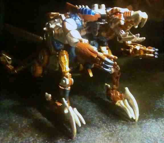 Behold! Transmetal Dinobot (robot mode)! Constructed of: Transmetal 2 Dinobot, G1 Dinobot, and ROTF Wreckage (a dead wringer for Dinobot, I think). Despite being a combination of 3 different figures, he turned out less of a Frankenstein creation than T2 Dinobot!