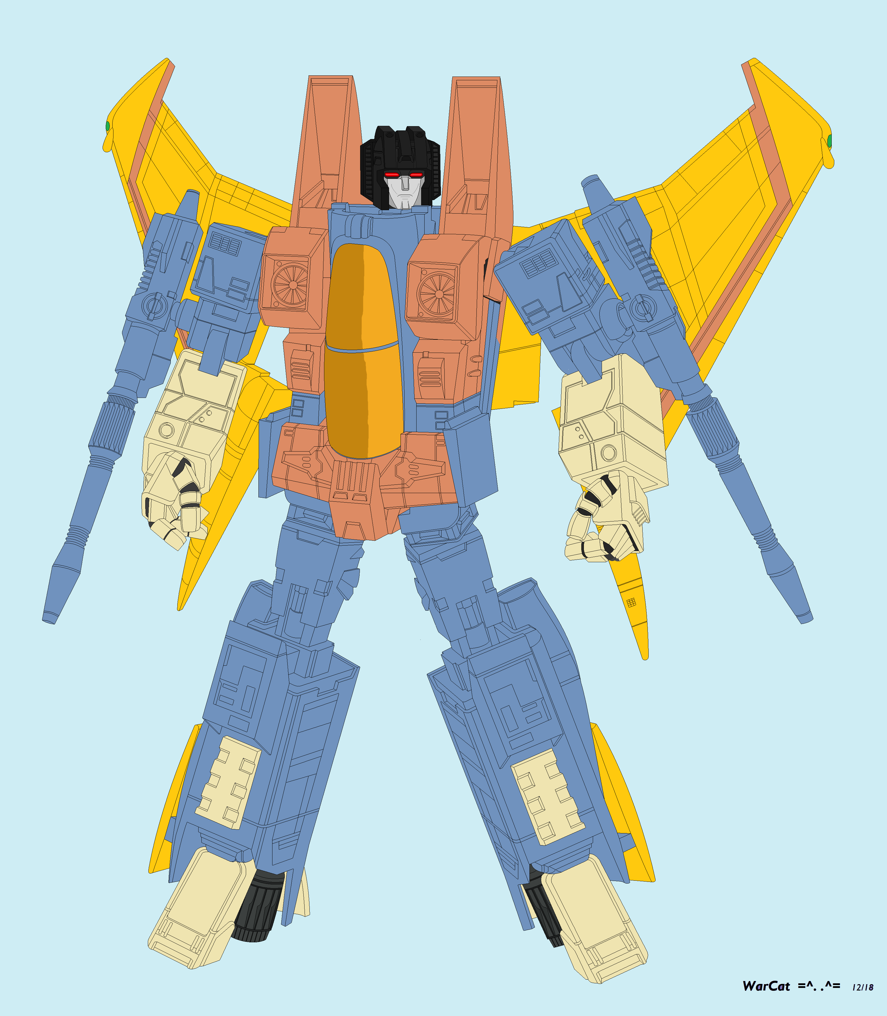 If I have a generic prototype... then I can make the other two main seekers... and I did. However, after this drawing I started on my next one. And that drawing had a cockpit canopy that was a very prominent part of the toy, and other parts that were under different colored tranparent parts. So, I did learn and Starscream was waiting for me to properly fix him. SO... I did. Even went so far to include reflections in the canopy, and gave them all different facial expressions.