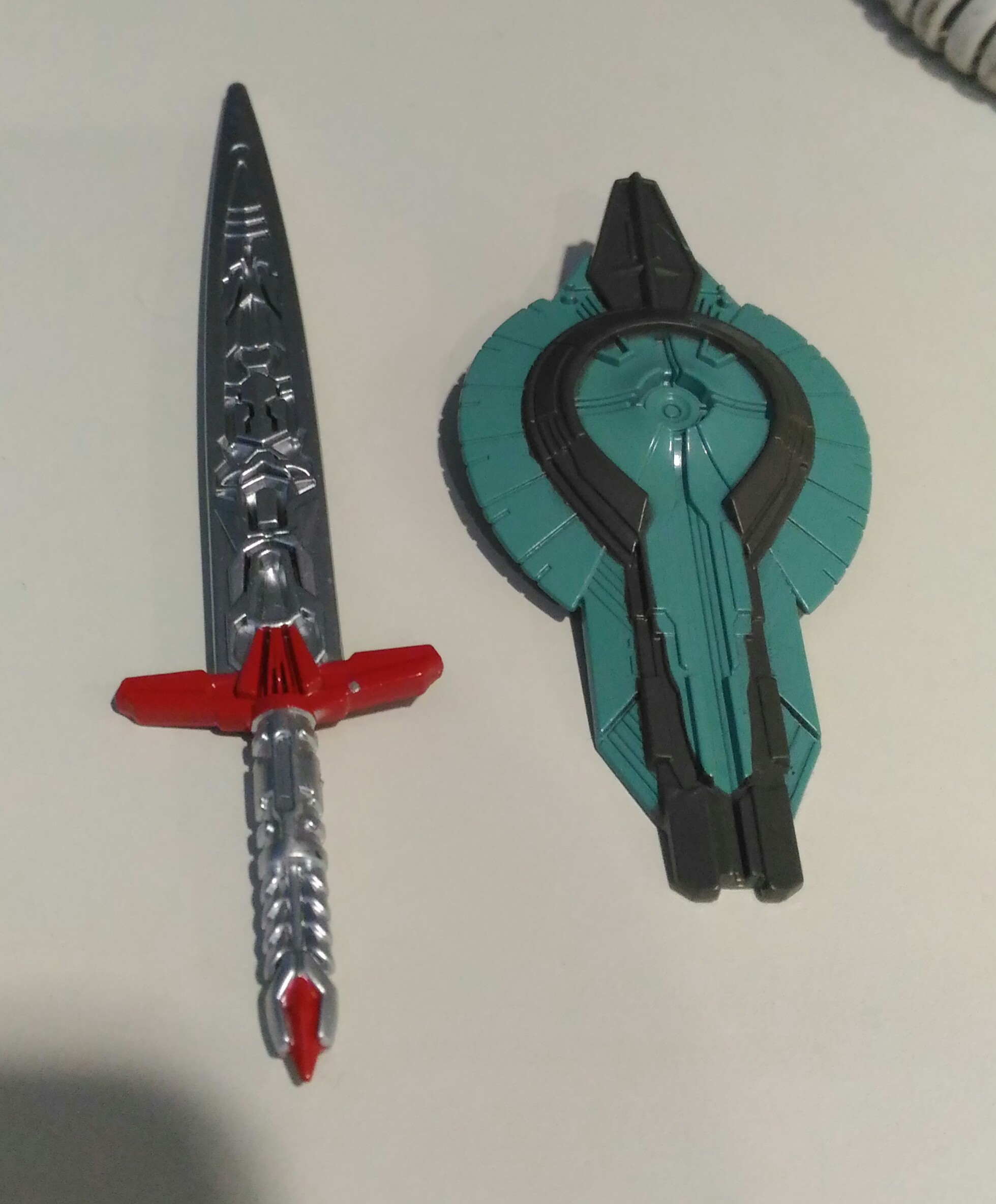 the shield is pretty much the same, except the blue used here is darker. The sword is where it really shines. Instead of orange, the sword now has a silver color with red hilt. Looks really good there.