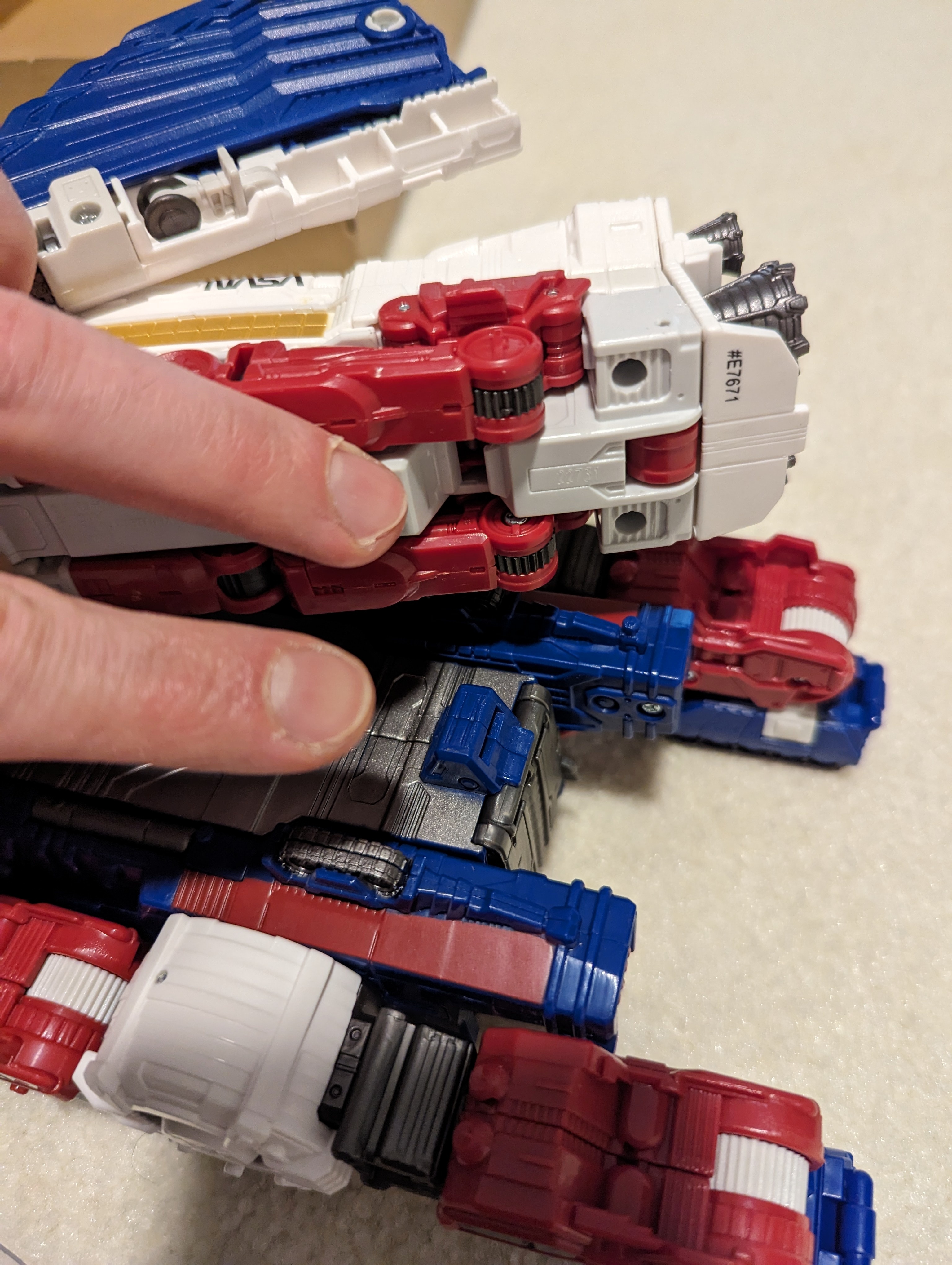 G Optimus is pretty nice overall and he's much simpler to transform than the original deluxe. But there's two annoyances that irk me. First, the fact that the truck mode does not have a rear end. It's just a huge gap. Second, I understand the arm-swapping gimmick for the gun. But you can only shove up his arm up his ass to store it. It is a silly design choice and it's not secure. However, both problems will be fixed with the upcoming DNA Design upgrade kit. A kit that is ironically much more expensive than the entire bot. I already bought and installed some filler pieces to fill in his hollow limbs and I bought the Repros already. So I'll fully commit with the DNA Design kit and have a 150$ Gamer Optimus in the end. He's worth it.