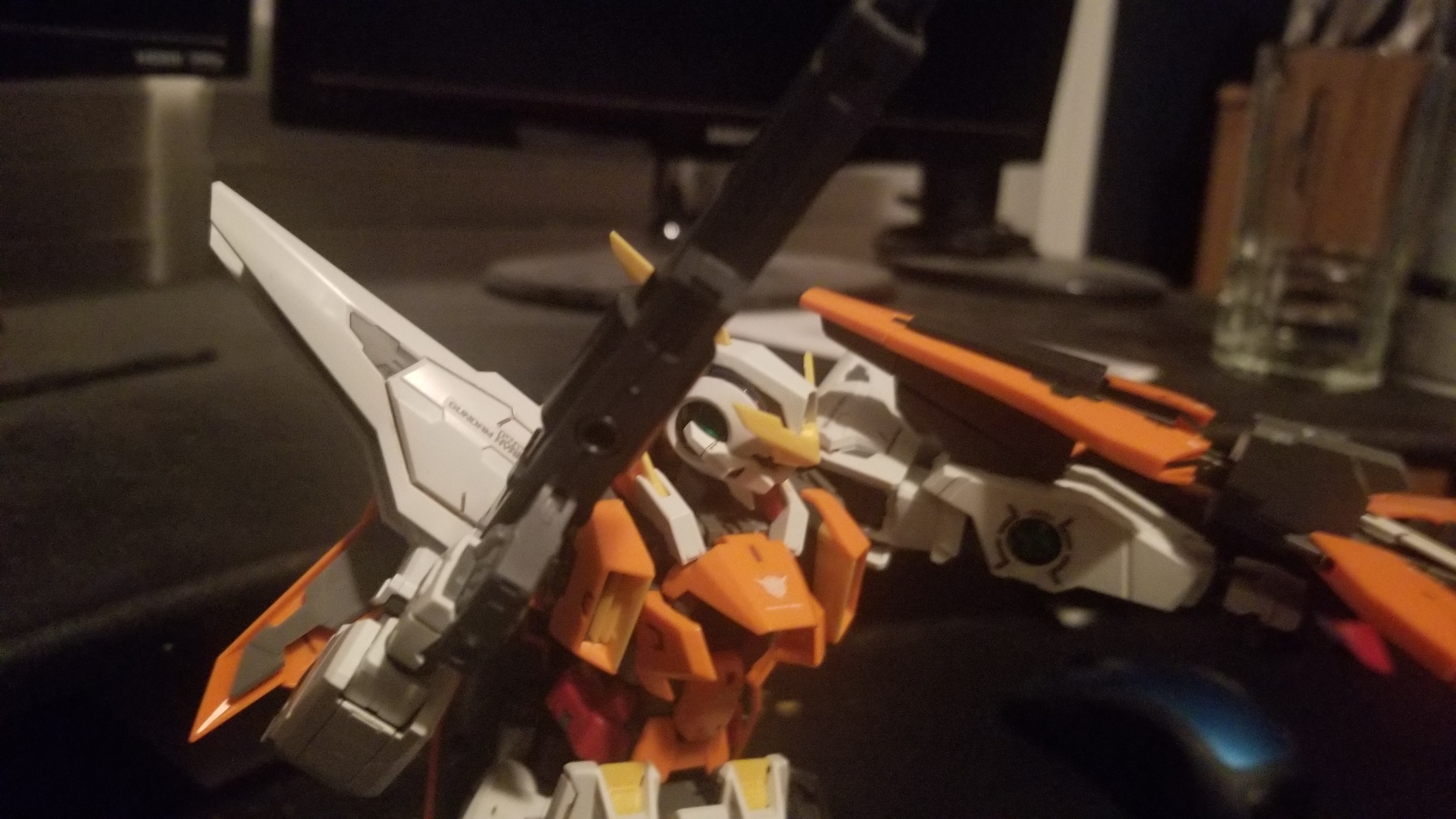Final got it finished. I was aiming for one of the action poses form the final fight against O Gundam where Setsuna drew out a beamsaber. It's not 100% but I think I got somewhat close given what I have to work with I may make adjustments this weekend.
