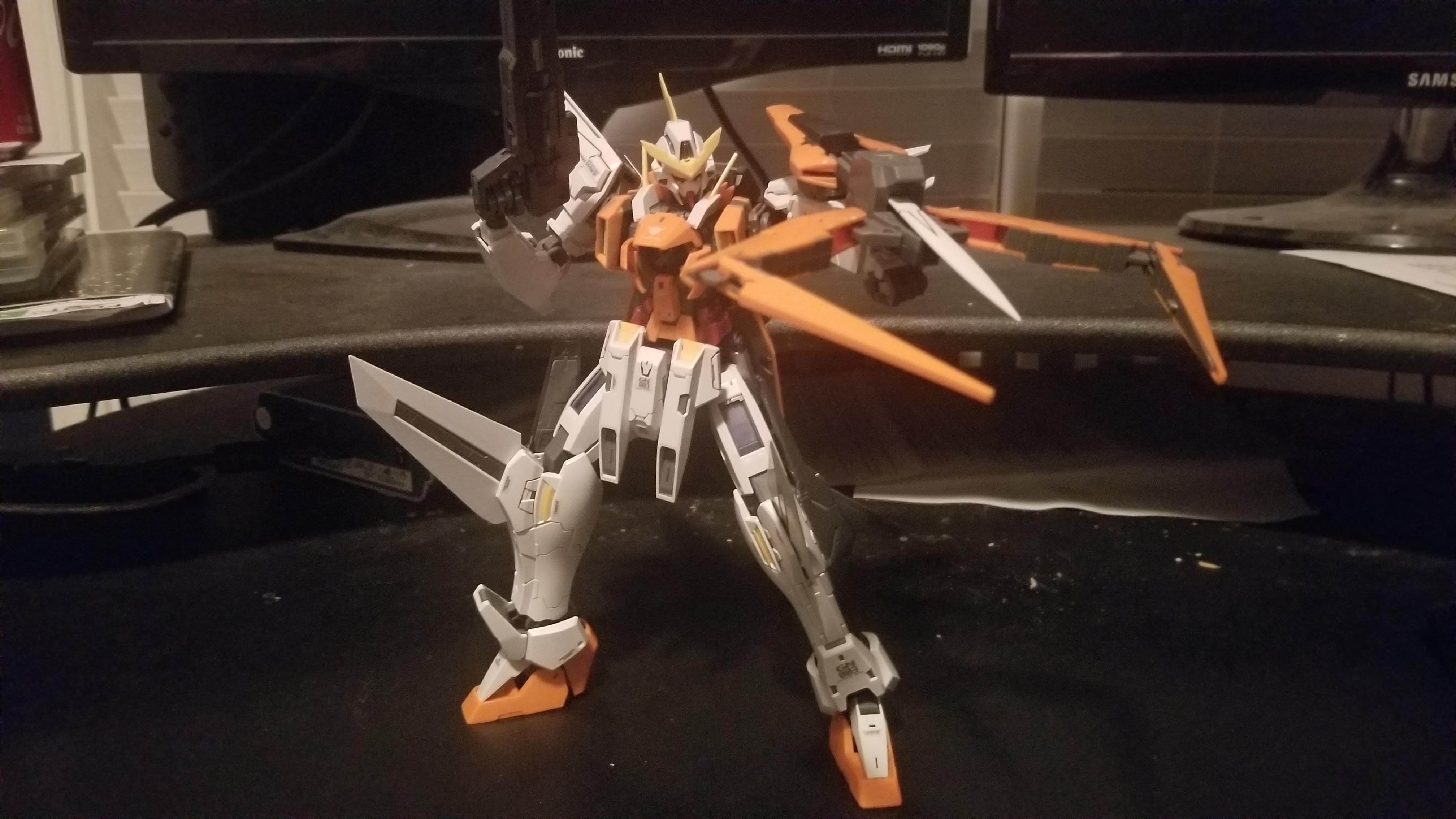 Final got it finished. I was aiming for one of the action poses form the final fight against O Gundam where Setsuna drew out a beamsaber. It's not 100% but I think I got somewhat close given what I have to work with I may make adjustments this weekend.