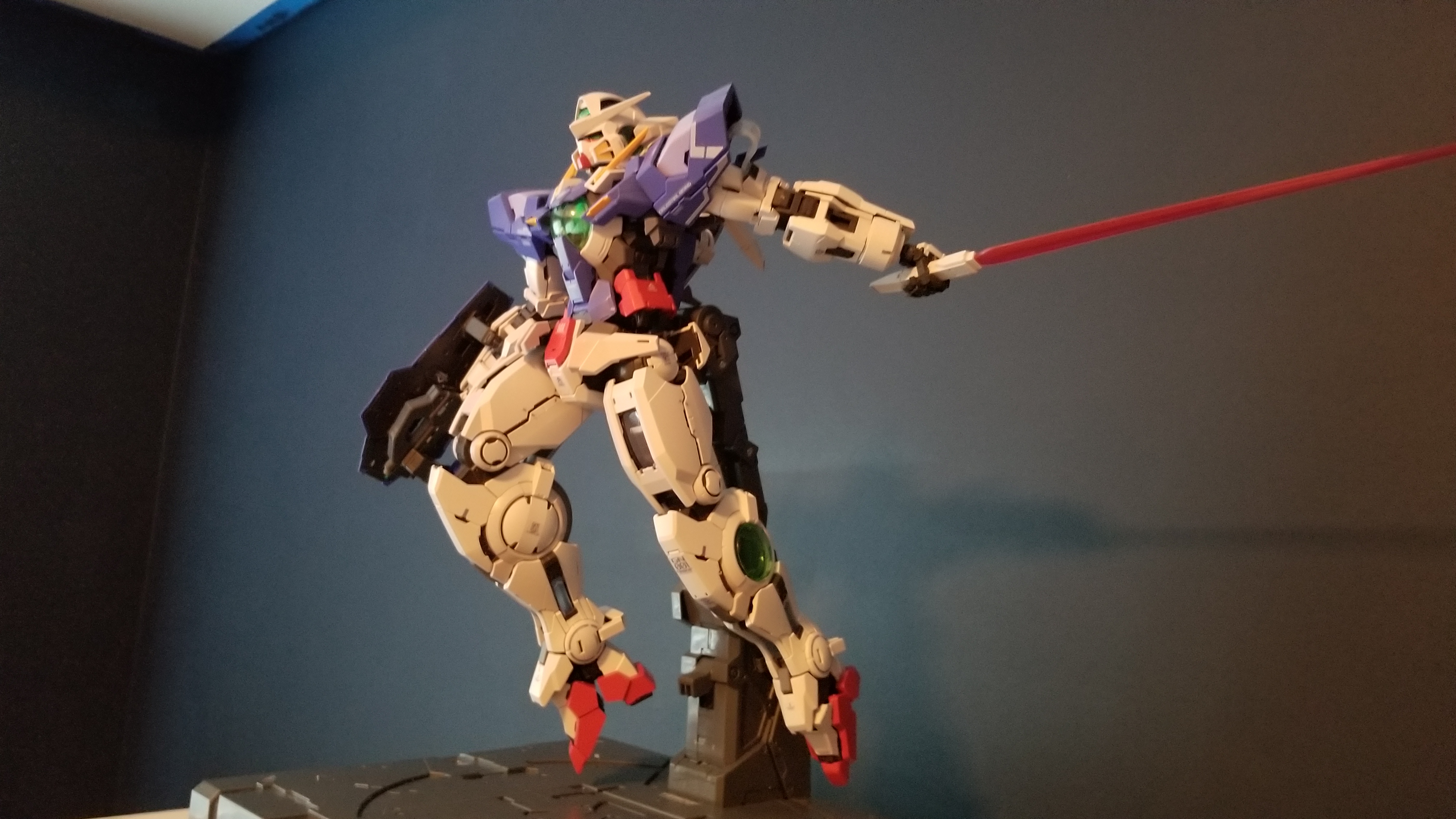 Final got it finished. I was aiming for one of the action poses form the final fight against O Gundam where Setsuna drew out a beamsaber. It's not 100% but I think I got somewhat close given what I have to work with I may make adjustments this weekend.