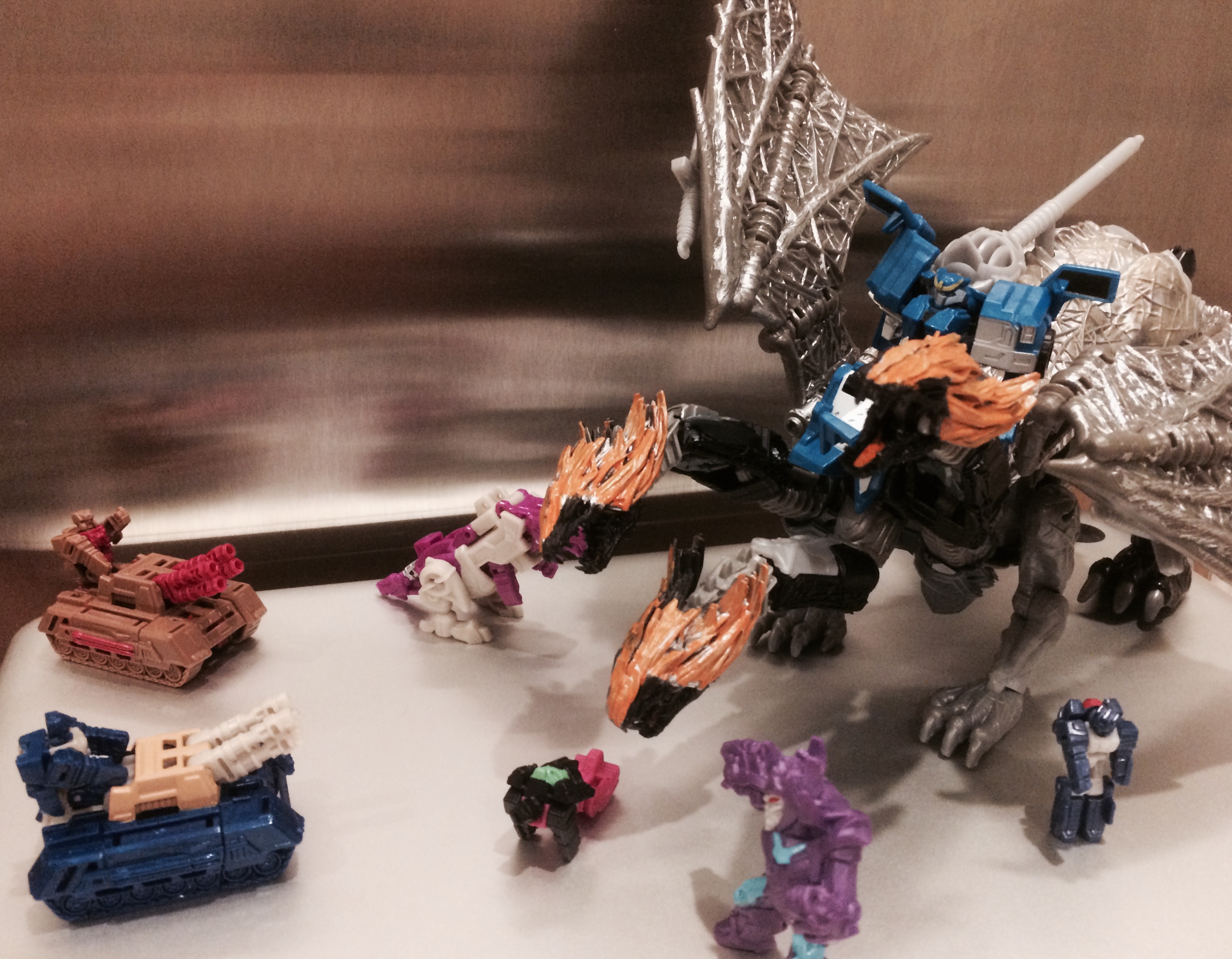 But one of the games I remember seeing for the first time was Dragon's Lair (1983). With animation from Don Bluth, it had the laserdisc driven, graphical beauty of an animated movie with the typical change-draining, instant-death philosophy of any arcade game. In a nutshell, you were a knight on a quest to save the lovely Princess Daphne from a dragon. And thus my love of dragons and blonde babes in bathing suits began.Like most fantasy-fans, I love dragons and seeing them in mainstream faire; from Dragon Age to Game of Thrones. It has made everyone else fans as well!I still haven't seen The Last Knight, but wow -- Dragonstorm looks fantastic! Who would ever have thought a movie with swords, knights, a three-headed robo-dragon & Cybertronians could gross $600 million globally?Being a three-headed, Leader-class dragon is cool enough, but the fact that he consists of two Voyager bots -- Dragonicus and Stormreign, increases the fun factor on this figure. It didn't quite work for me with the Bayverse Dinobots (as knights), but it suits these robo-knights well.