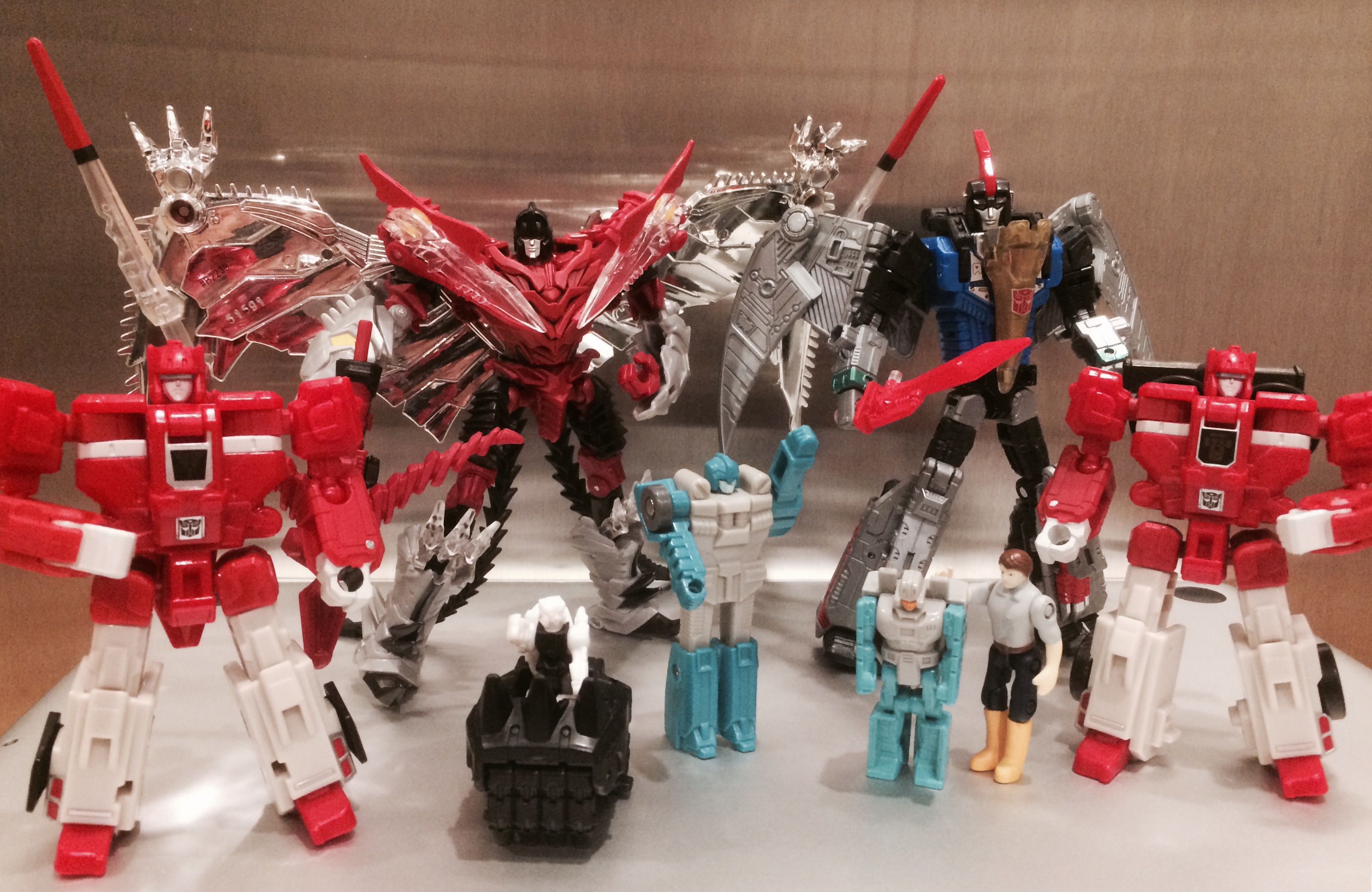 I totally get why fans love the Dinobots, I really do. But as an elementary school kid, I had nothing but admiration and respect for Optimus Prime; my wise, noble & idealistic robo-father figure.I couldn't help but be annoyed when the ding-bats thought that might made right, and were easily manipulated by Megatron to defect in the G1 cartoon....and nearly got Prime killed (Hot Rod succeeded in the movie, and I didn't forgive him until the last two years!).And then the Marvel comics went the extra mile and made him leader of the Autobots! It was a dark time to be a Bot, I bet. I totally wanted Blaster to show him who was boss.With the release of Deluxe/Voyager dinos for Power of the Primes, they've returned to belligerently kick ass and combine, too. Since I'm not a big fan, I don't plan on picking all of them up, but I did get Slash & Swoop. I paired them up with the Platinum Dinobots set, and although those from the set will most likely not be my go-to D-bots, I like them well enough.I think the G1 originals still do it for me -- I'd go for MP Grimlock. But I think he's a $@#%.