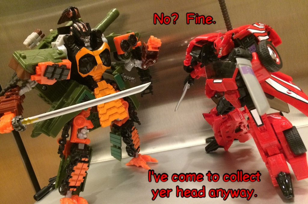 I was surprised by one of the best bot-bod upgrades ever: Megastorm to GIGASTORM-sama! Seriously though, to go from G2 Megatron to Trypticon with better hair? Wow.