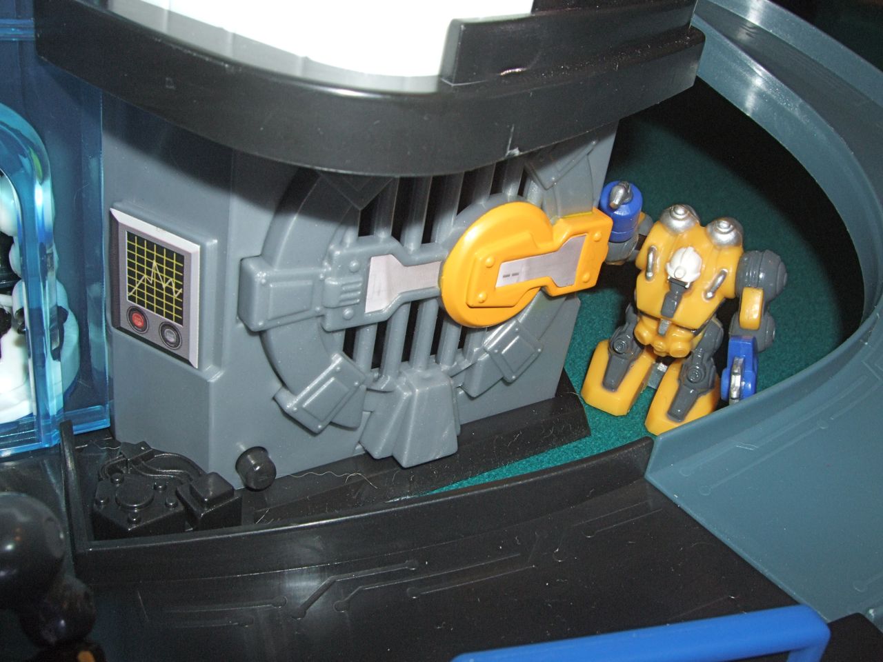 Amazingly, the line, which is produced by ToyQuest (I know, WHO?) has a lot of accompanying vehicles and playsets available in its initial release, which is good because I am a sucker for playsets in which to make my action figures feel at home. The playsets aren't the sturdiest things in the world as the pieces don't lock tightly together, but a little glue helps a lot. So far I've picked up the Police Fortress, but there are four other sets available, one of which is a customizable track system for the bots to scoot around on, like robot Hotwheels. Two packs are 6 bucks, vehicles are 10, and bases are 20. TRU has some exclusive packs that include a couple extra bots and a vehicle which I've worked out to be a 6 dollar total savings as opposed to buying it all separately.