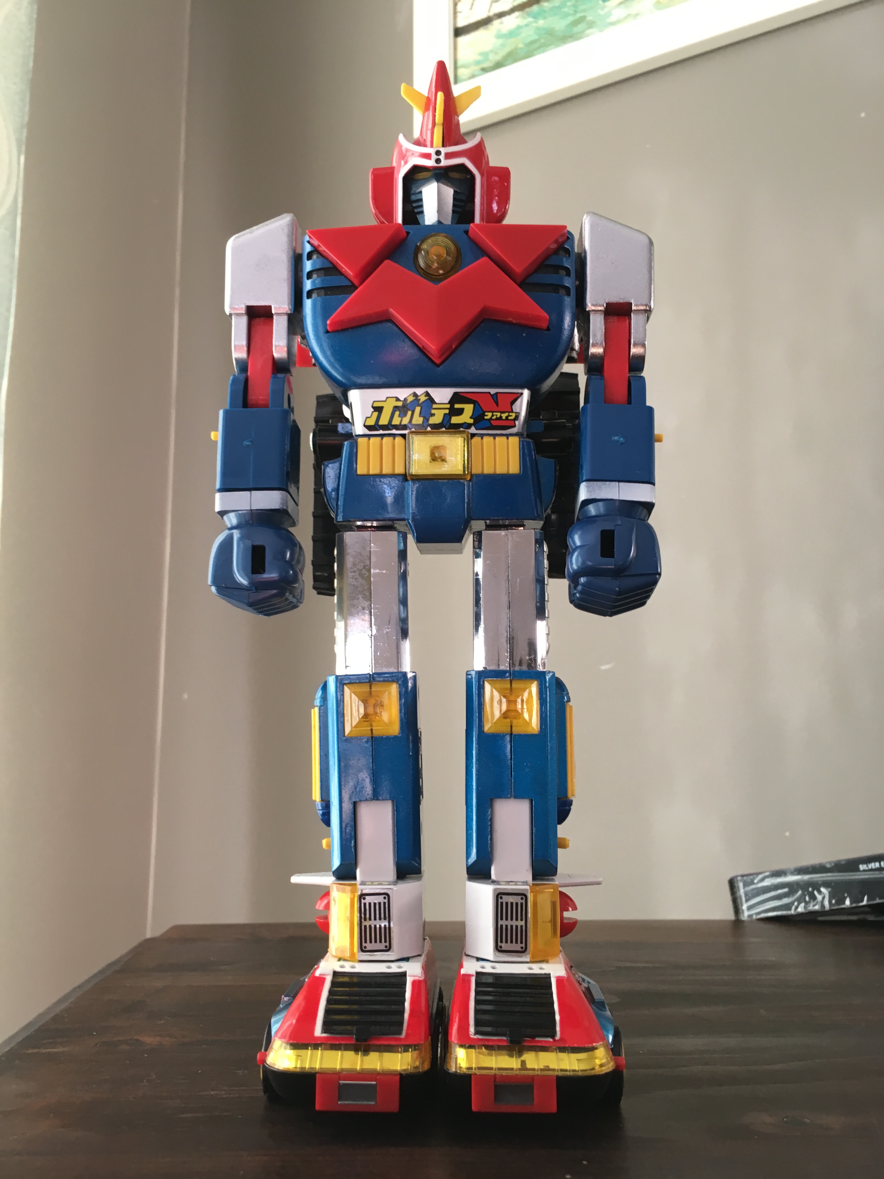 Some photos of my Godaikin Voltes V. This is probably my favorite toy collectible out of all of them (including Transformers). It's not the greatest toy figure as it has very limited articulation/pose-ability and it's not quite an accurate depiction of the TV series robot. But it somehow just presses the right nostalgic buttons for me.