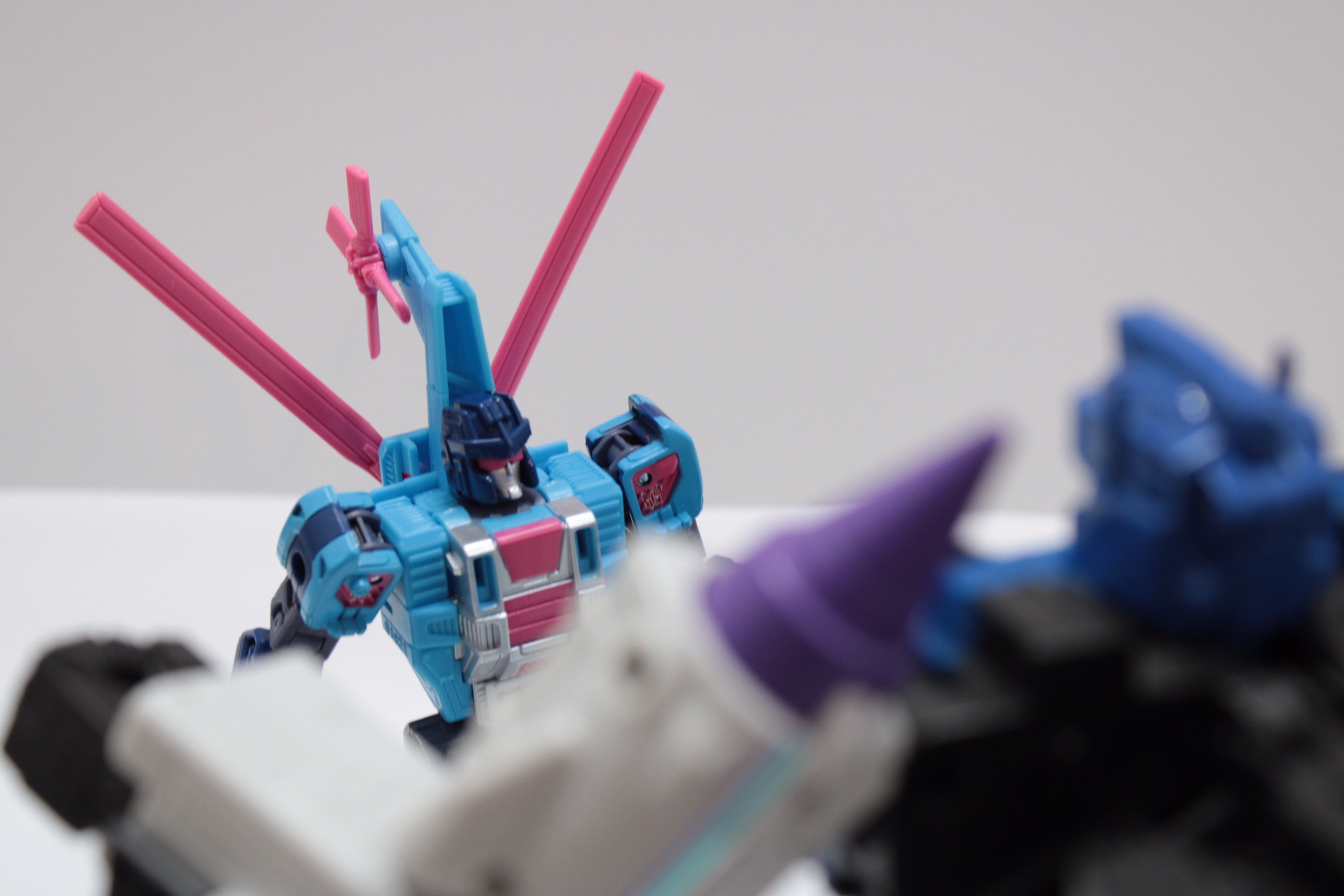 It's not 100% comic accurate (most of the time that'd be impossible anyway) but there's no mistaking it being Rotorstorm. I would've liked them to have found a way to incorporate the little turbines he has above his shoulders in the comic into the figure, But it's not a big deal. Also, The blades that rest on his back are officially transformed pointing upwards, Where in the comic they pointed straight downwards.