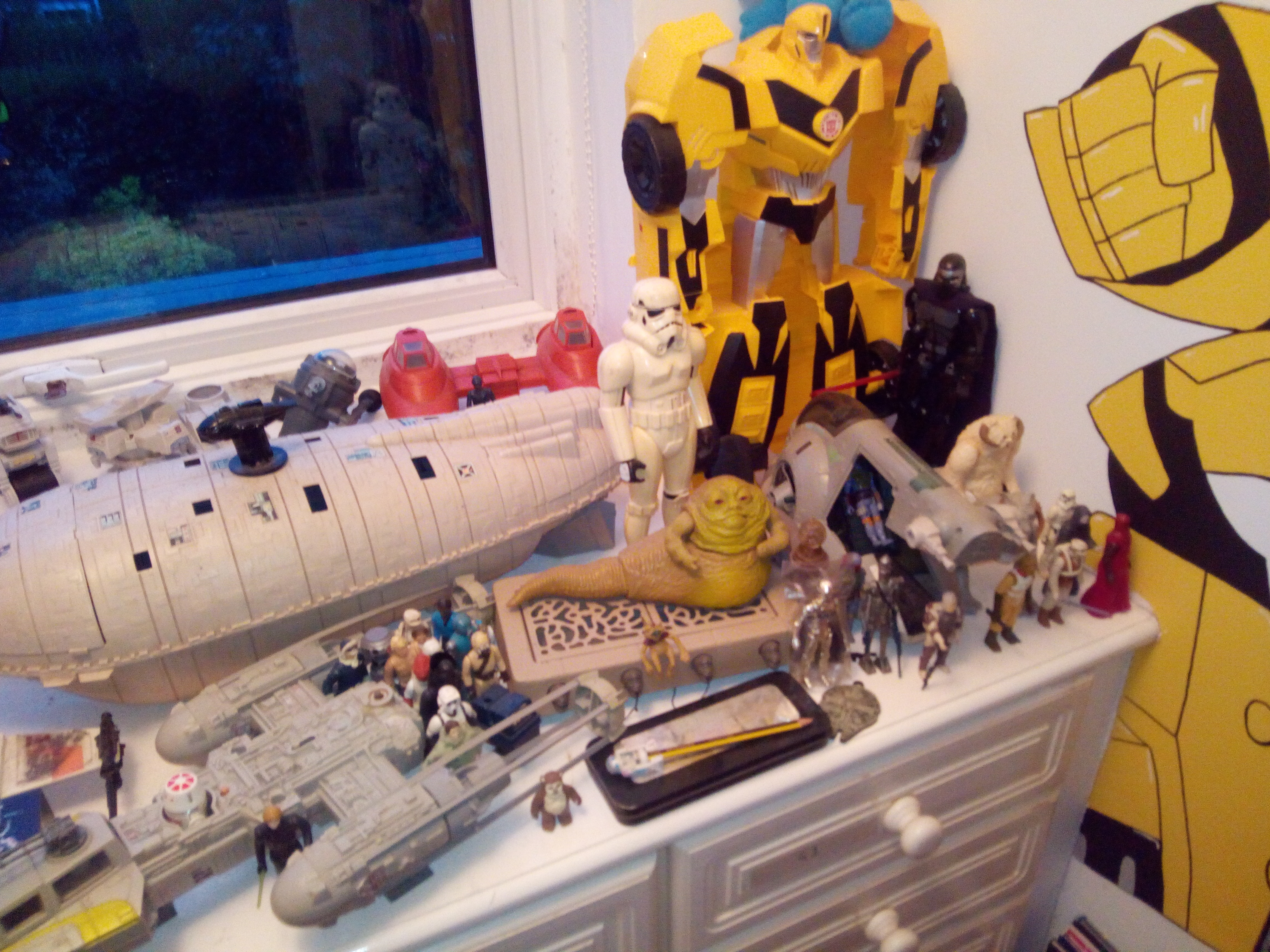 I've just finished some new displays in my bedroom (star wars and transformers, including a wall of G1 boxes), just thaught I'd post some pictures to see if you guys have any ideas of how to improve it. All the best.