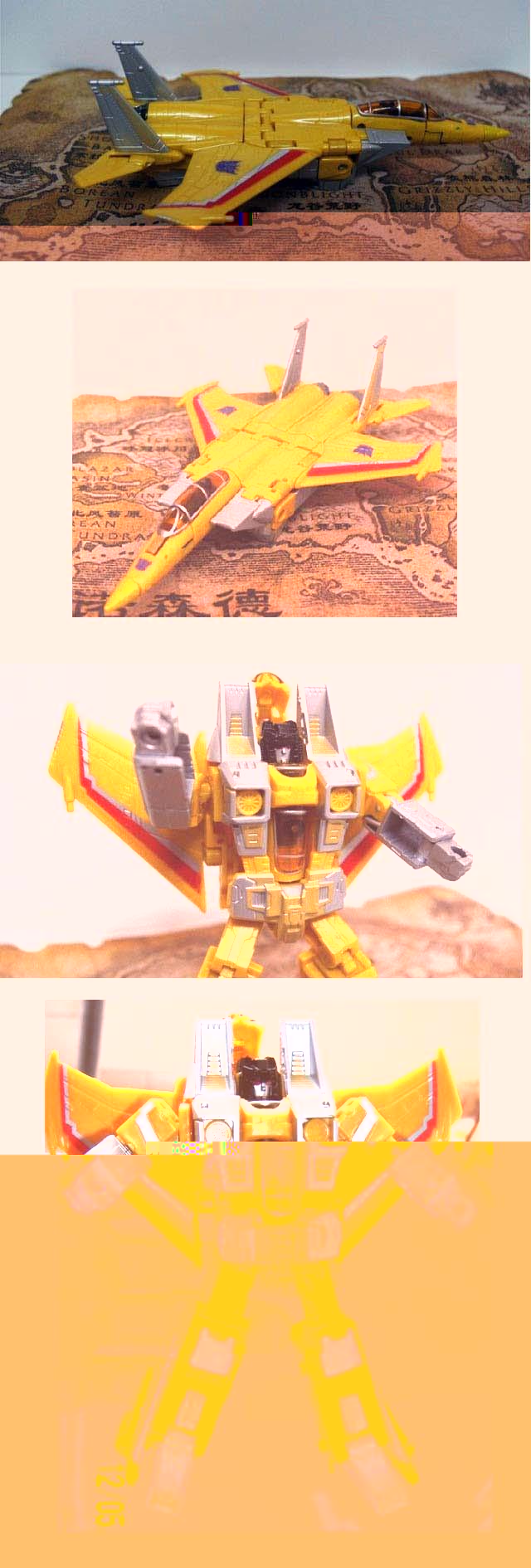 Skyfire-5 wrote:Umm yeah, as an avid Sunstorm fan I gotta pass on this. Unfortunate indeed. All the things that make him Sunstorm were ignored. I know the silver replaces that white. I question why not a silver nosecone? I await the KO revision or better yet a Hasbro RTS release - after all the mold originated with the rubsign, I'd like to see it come full circle.