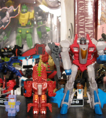 I'm embarrassed by the flaws in the painting (it was my first time painting one of these guys), so be gentle. As you can tell from the placement of Prowl, this is a very tiny little fellow. And, for the record, I'm sure we've seen official products with as many painting errors.
