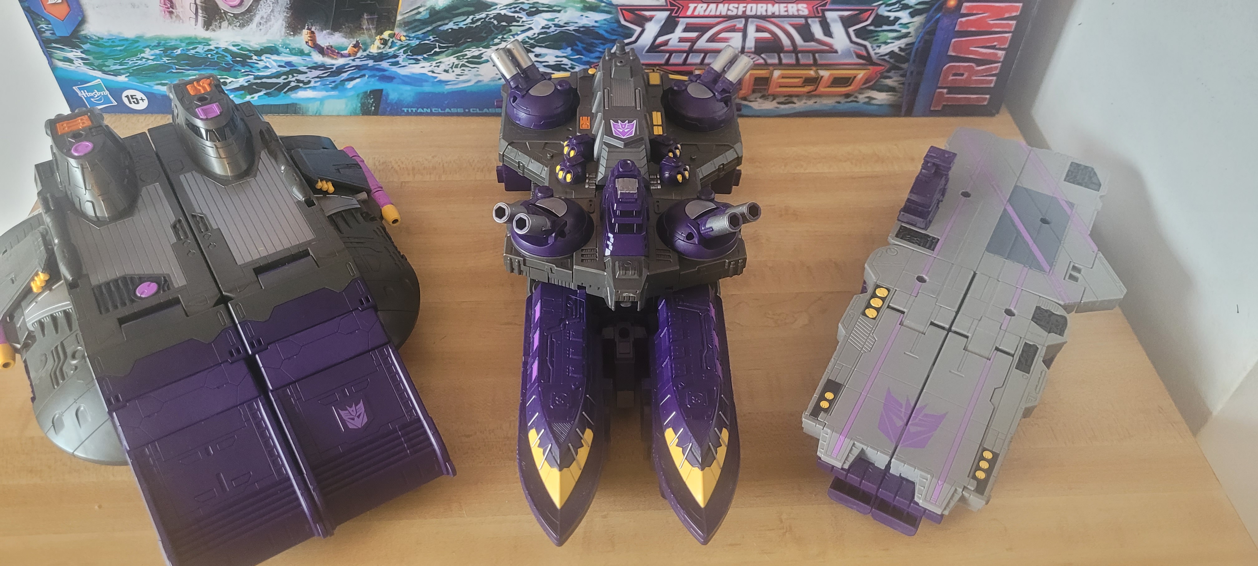 I didn't think the partsforming would bother me in-hand, but it's been a few days and it still does. As someone that couldn't have cared less about add-on parts for that soulless Legacy Armada Megatron, the compromises made to accommodate that one feature are glaring. A choice was obviously made to make that work no matter what, and in my opinion, it was not the correct choice. Almost every problem I have with the toy comes down to "that had to happen for the Dark Fleet to work" and that just stinks. Why did this toy have to suffer to give Armada Megs an add-on?