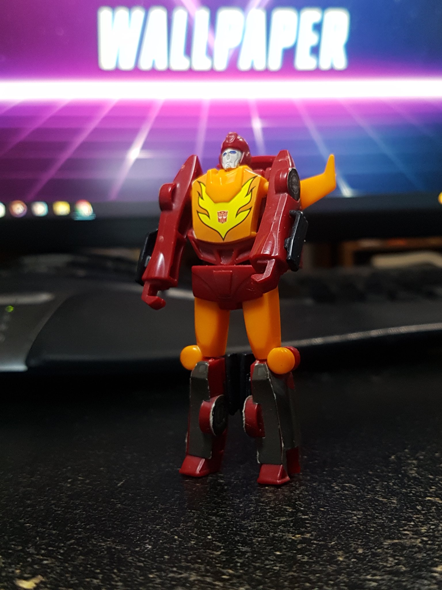 Never had an original Hotrod or Rodimus Prime toy. However I do have the Kabaya Gum model kit that can be both! My sister gave it to me a few years ago. A flaming space camper will never not be funny to me, but my favorite feature is how my sister f*kd up the face sticker place ment. Love it!