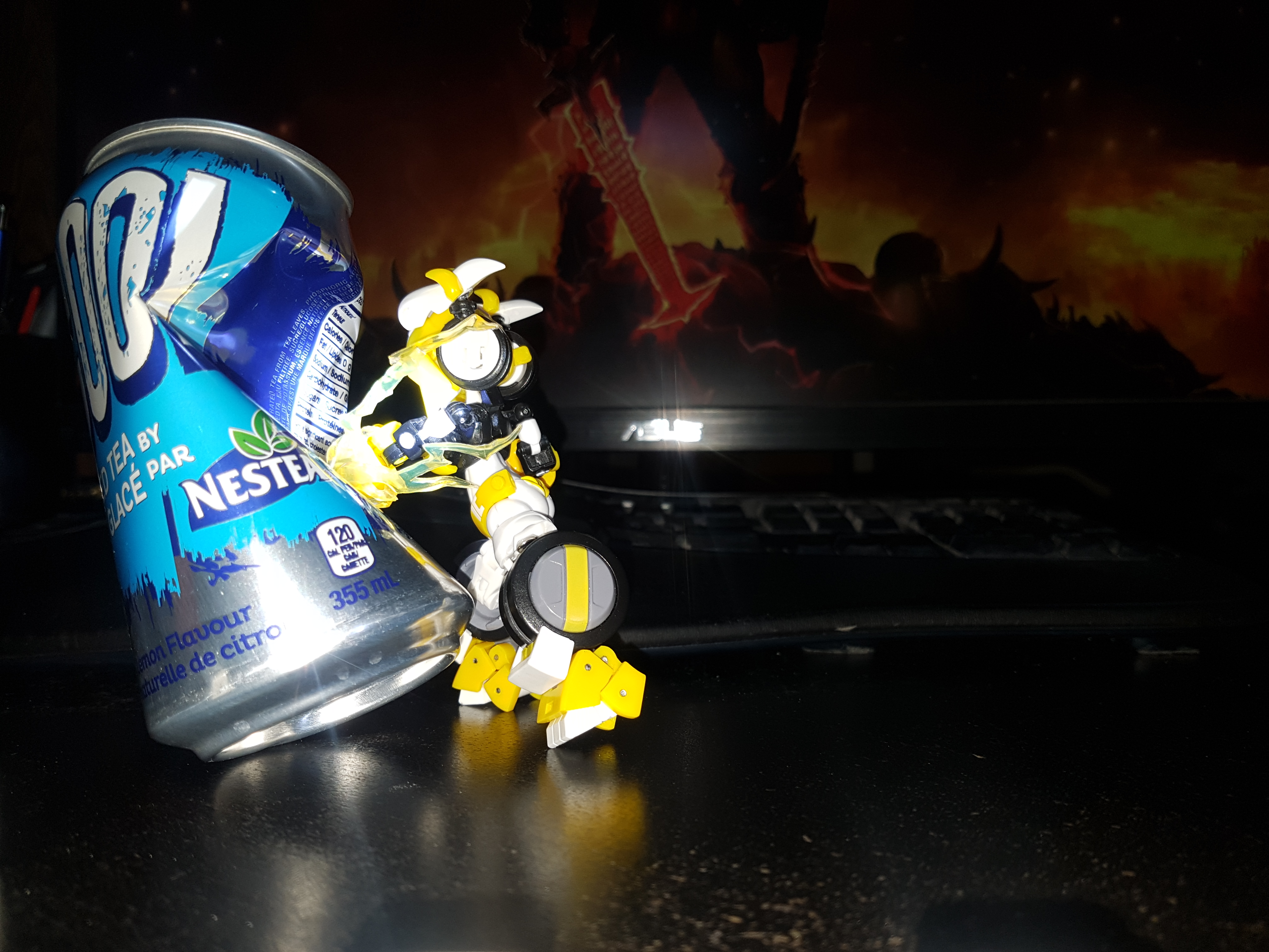 Thunderlight beating the hell out of a can while I listen to metal.