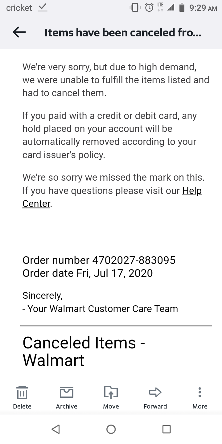 The dreaded Walmart Delayed, check back later status may not be the kiss of death others are making it out to be. My spoiler pack and Bee were in that status yesterday. This morning the Spoiler pack was split from Bee and is being prepared to ship, so things can actually come through from the delayed status.