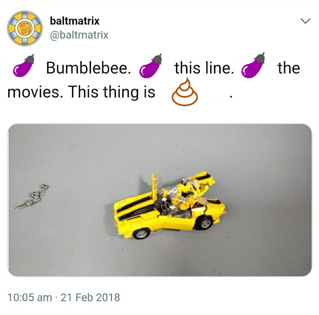 General warning to you guys: apparently, Baltmatrix got his wave 1 deluxes and broke his Bee pretty fast. Not surprised considering he seems to break figures regularly and is not exactly a good reference for quality on figures, especially movie ones, but worth noting to you guys