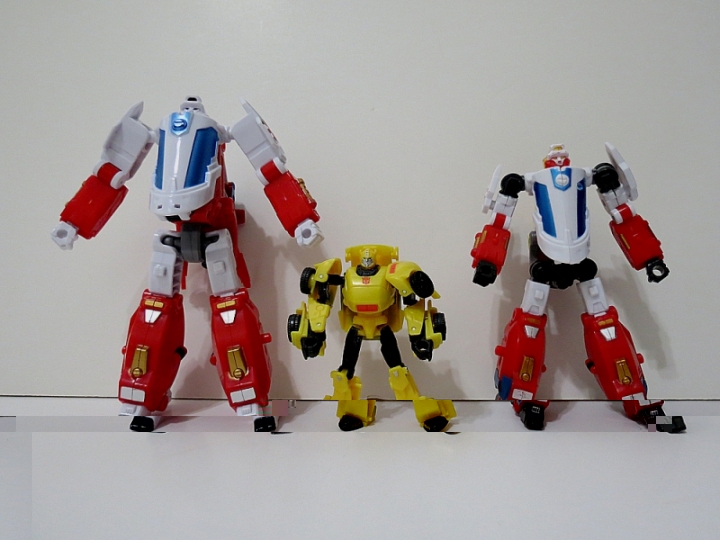 The police car, ambulance and copter would work as-is, just the mototcycle is too futuristic, but he'd be OK. If he could swap spots to be a leg that would be better.