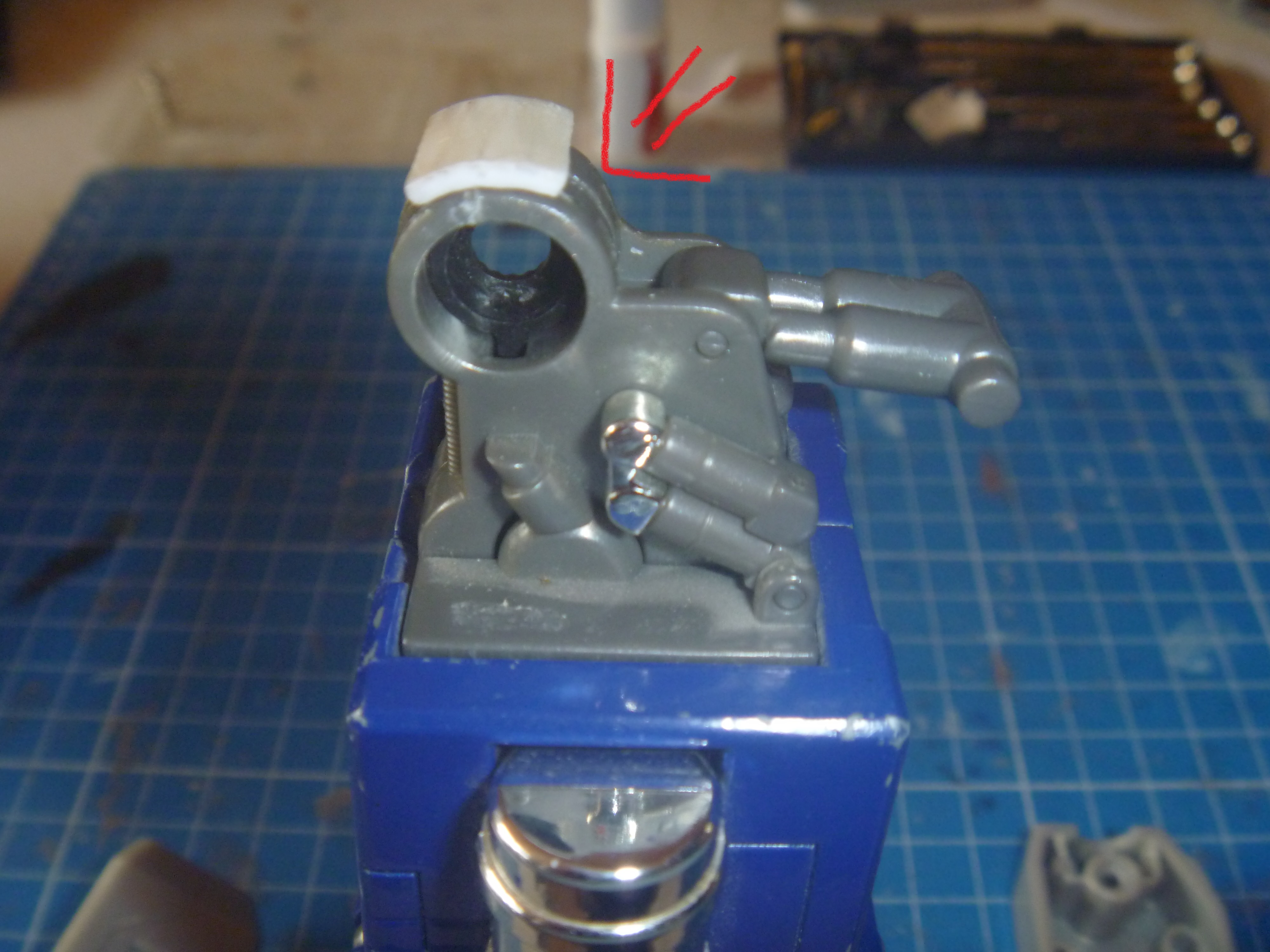 Do you remember when Perceptor says "I think I deduce the problem"?, well, I think I may find a solution. It's more easy to fix this if you think in the broken pieces as a broken bone, in some cases it only needs to get immobilized to heal, in other cases, it needs titanium screws, and in the case of my MP 1 knee, I forgot to tell you that before the patch, I cement the two pieces of the knee (it was not meant to get separated anyway), in this case, it was like a broken bone with a thick styrene patch as a titanium screw. In the case of the switch of my led Joker's statue, I first cement the piece, I waited until the glue was dry, checked that the piece was strong enough to work properly again, and I applied glue again, to make like a blíster backing, like a bone fracture that doesn't need screws.