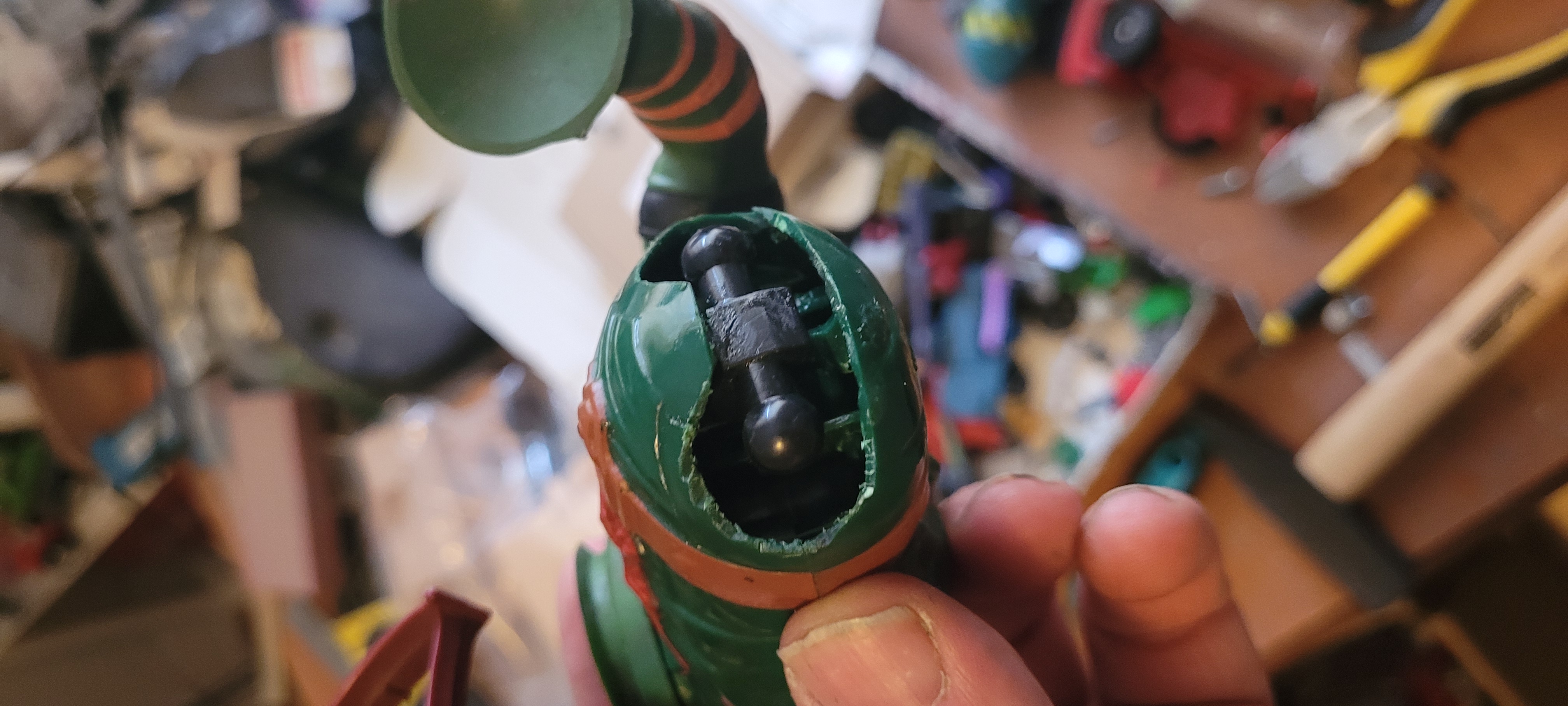 Well, turn out that those rubber things were completely rotten and impossible to remove from the legs with drilling larger holes. So I used my TF customiser skills to fix him.