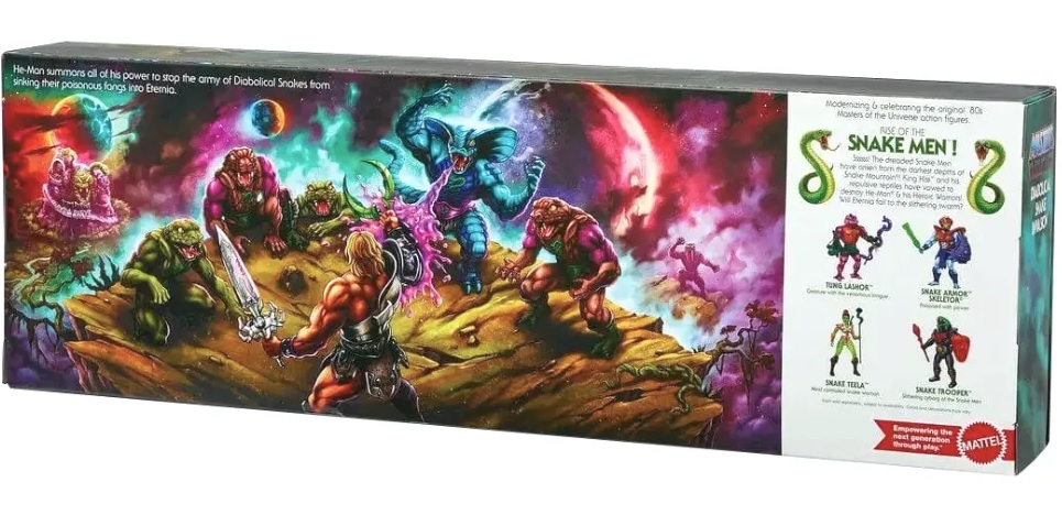 On the front of the Snake Invasion boxart, is part of the Eternia playset. On the back is an image of King Hiss' transformed Snake Mountain (homage to the 200X show twist). Considering this boxset is Origins. What if the new project is a base for the Snake-Men?