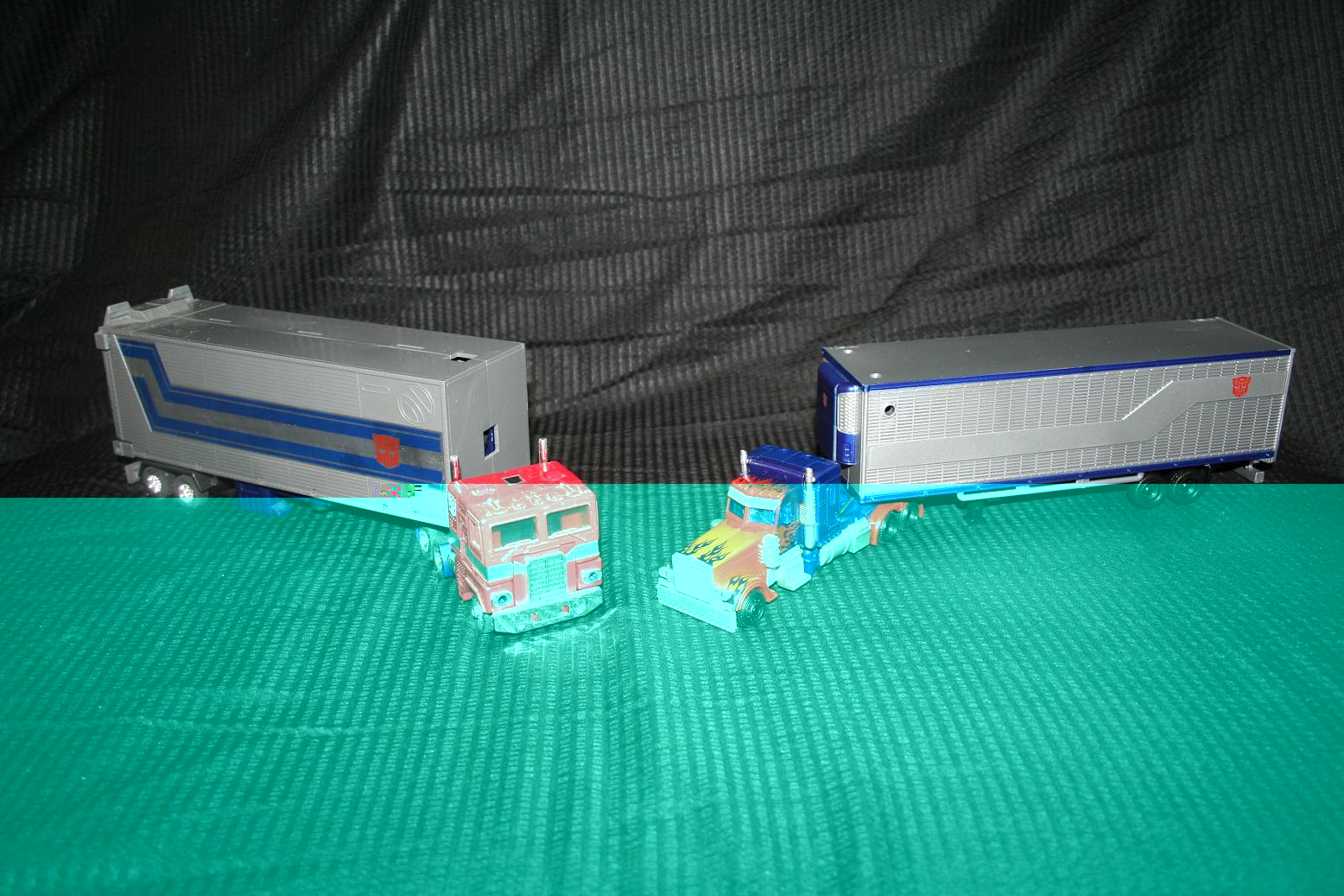 DISCHARGE wrote:Alas, the excessories I am featuring here are mutually exclusive. This is not at surprising and not terribly bothersome, as admitedly they were sold seperately with different decos of this Optimus Prime toy, so they were not designed to work together.