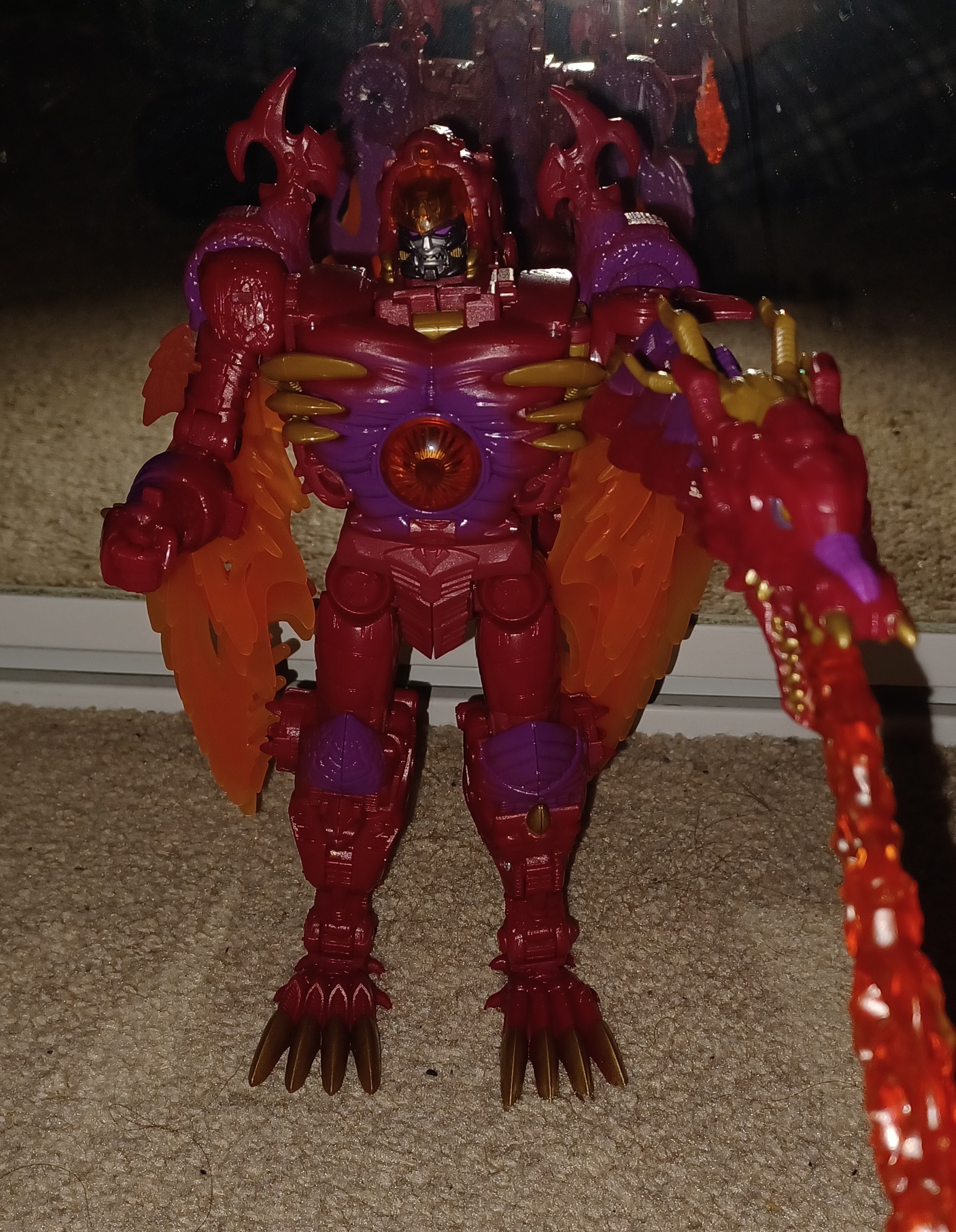 He's a heavy retool of the old TLK Steelbane. But contrary to this previous toy, Crimsonflame is tight like a shy newlywed. He was also priced as a regular deluxe despite coming with tons of accessories.