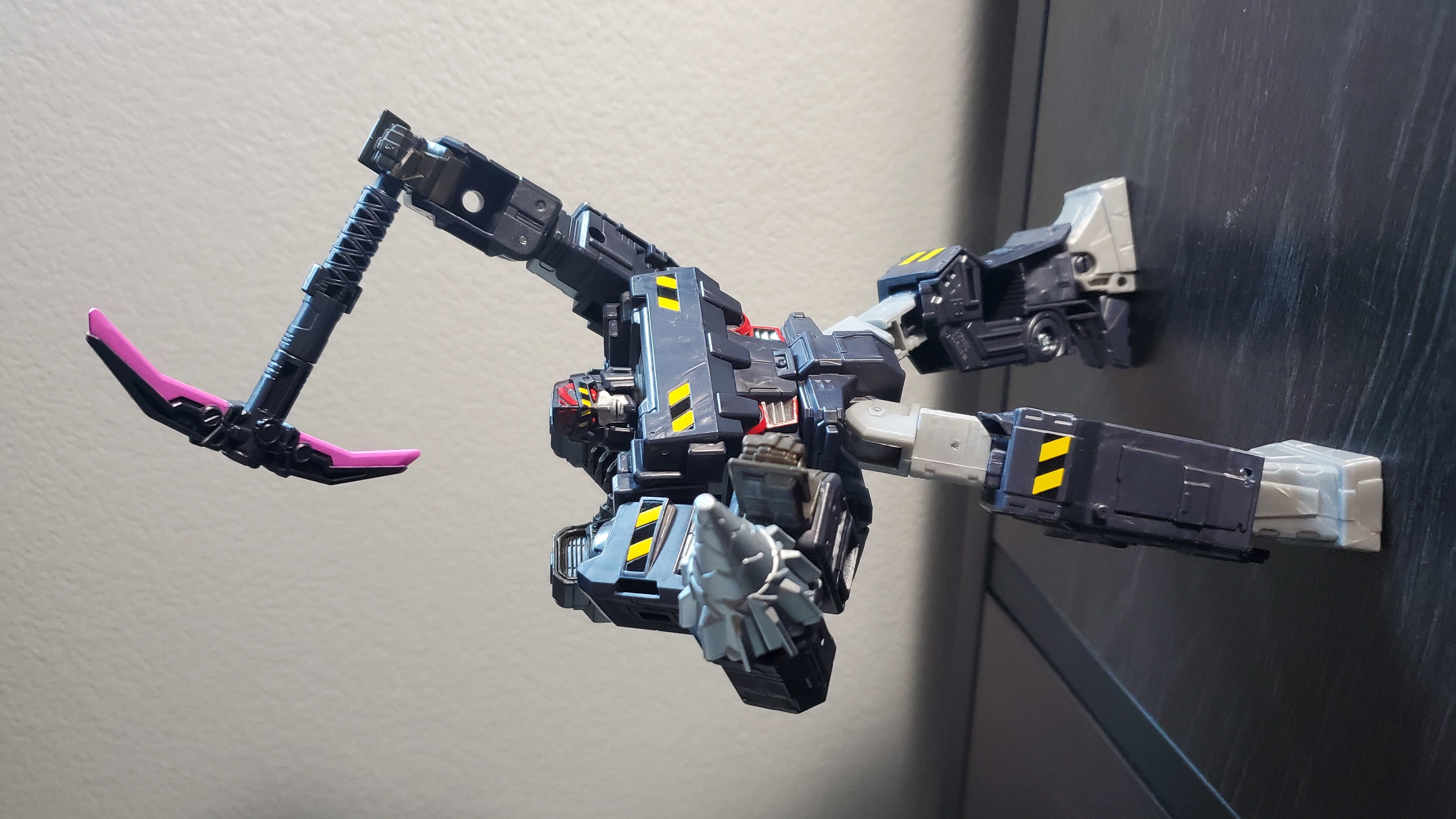 Been organizing all my pics on the back log and figure so here's Miner Megatron from the Rise of Tyranny 2 pack. He gives a hint of my new setup. This is actually my first time with the mold, and my last. Works well for his Cybertronian mode (which I will be using him for), but as a main Megatron I could not forgive this figure's proportions and excuse for a tank mode. For his own purpose, he is perfect, and he's currently standing in as my main Megatron until I get an actual one. I prefer to transform him based on how the early leaks online depicted his alt mode.