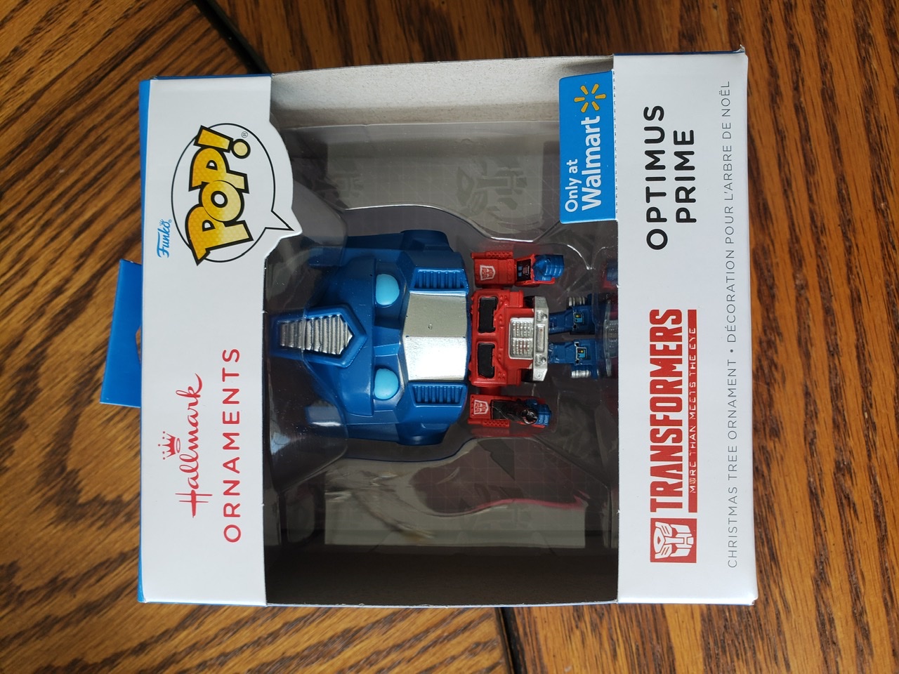 Fellow Seibertronian SGMLordMirage found the Walmart exclusive Funko Pop Optimus Prime ornament today. Yes, that means Walmarts are already putting up Christmas decorations in early Septeber.