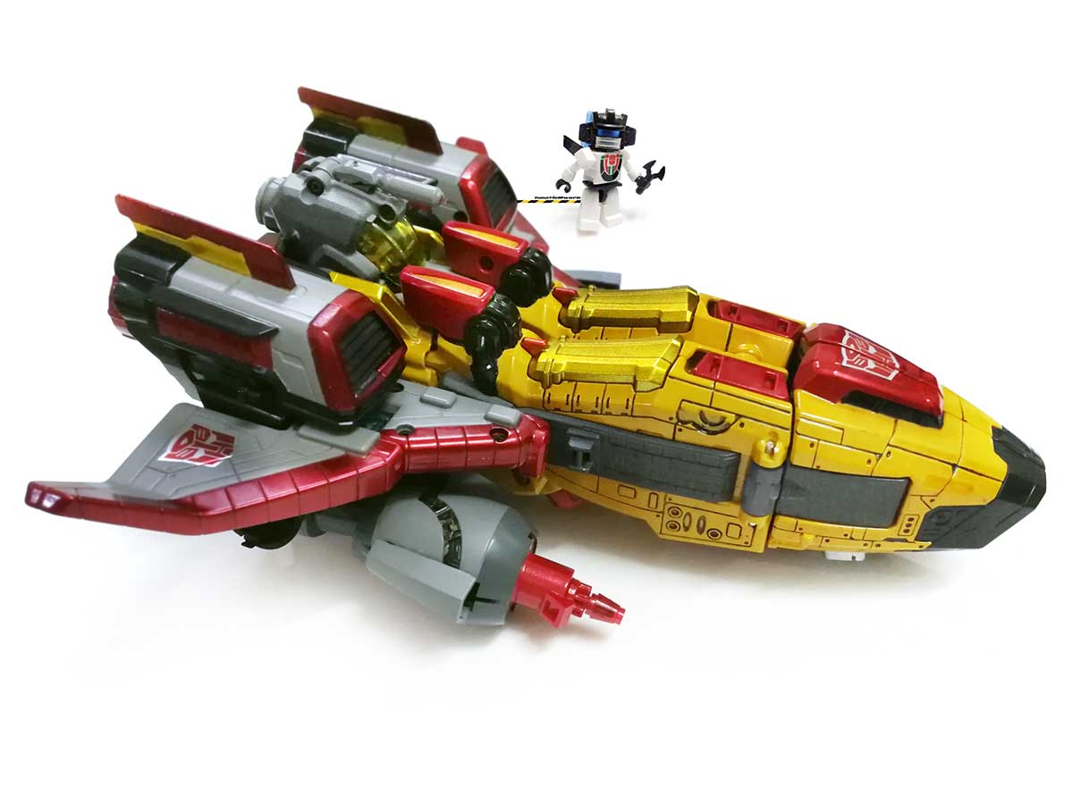 I love this. Especially the ship mode. The helmrt does look a little too big on him, but this is a fine figure. What did you start with? I dont recognize the mold