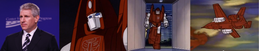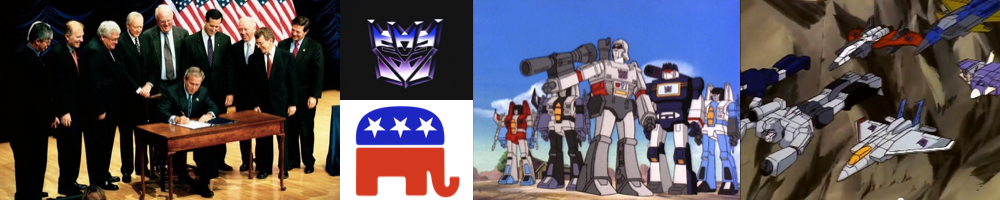 Preface: This series pretty much wrote itself, the way that the cartoon characters and the real ones (which is which again?) matched up. Though it's from a certain ideological angle—found to a degree in the original cartoons themselves—it does take on politicians from both US political parties, and each part in the series is somewhat balanced out by the next. I hope that G1 fans of all stripes enjoy it, especially those who followed US national and international news in the 2000s.
