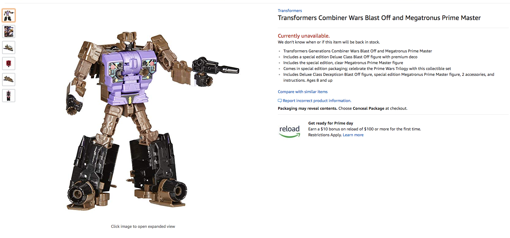 Transformers: Prime Wars Exclusive Blast Off with Megatronus Amazon Listing
