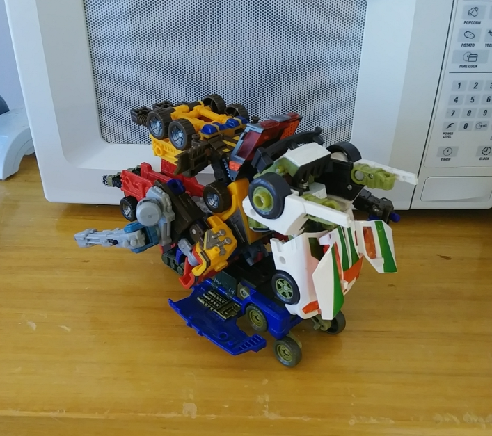 The energon fanmodes look like a lot of fun, I'm surprised that a truck and a race car made such a convincing aircraft! I tried to make the second combined robot - which looks great with the digitigrade knees btw - and found that it has a surprisingly regal feel. Especially with Menasor's sword. Although my preference would be for Amalgamous to be bigger, or possibly a bionicle, this design is so cool I may use it too.